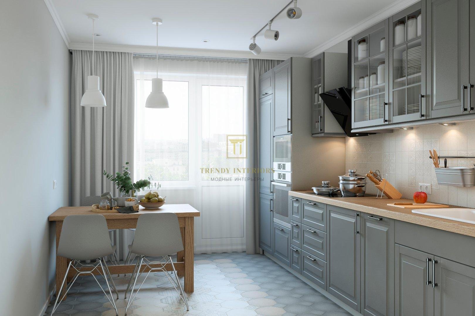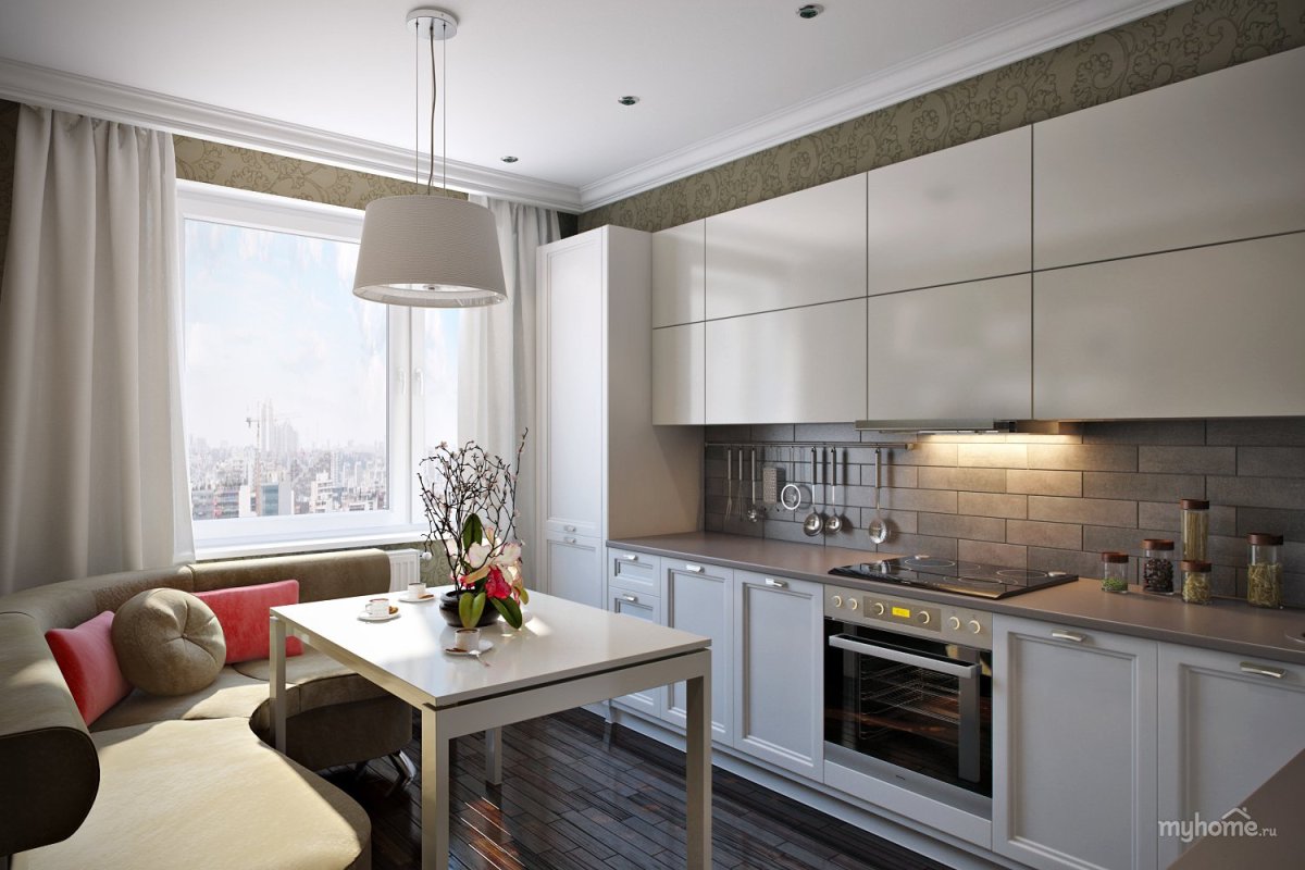 Интерьер кухни в трехкомнатной квартире