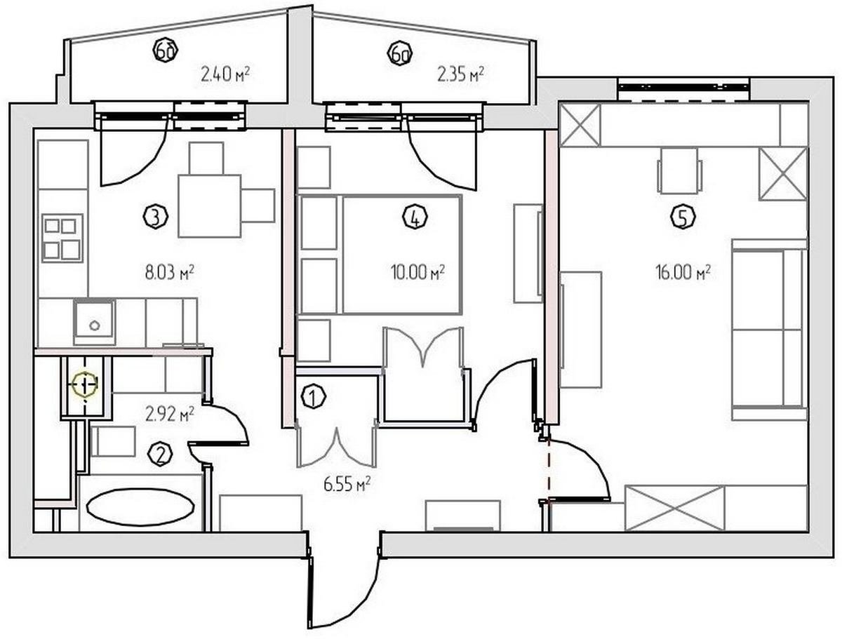 Двушка 44 м2 планировка