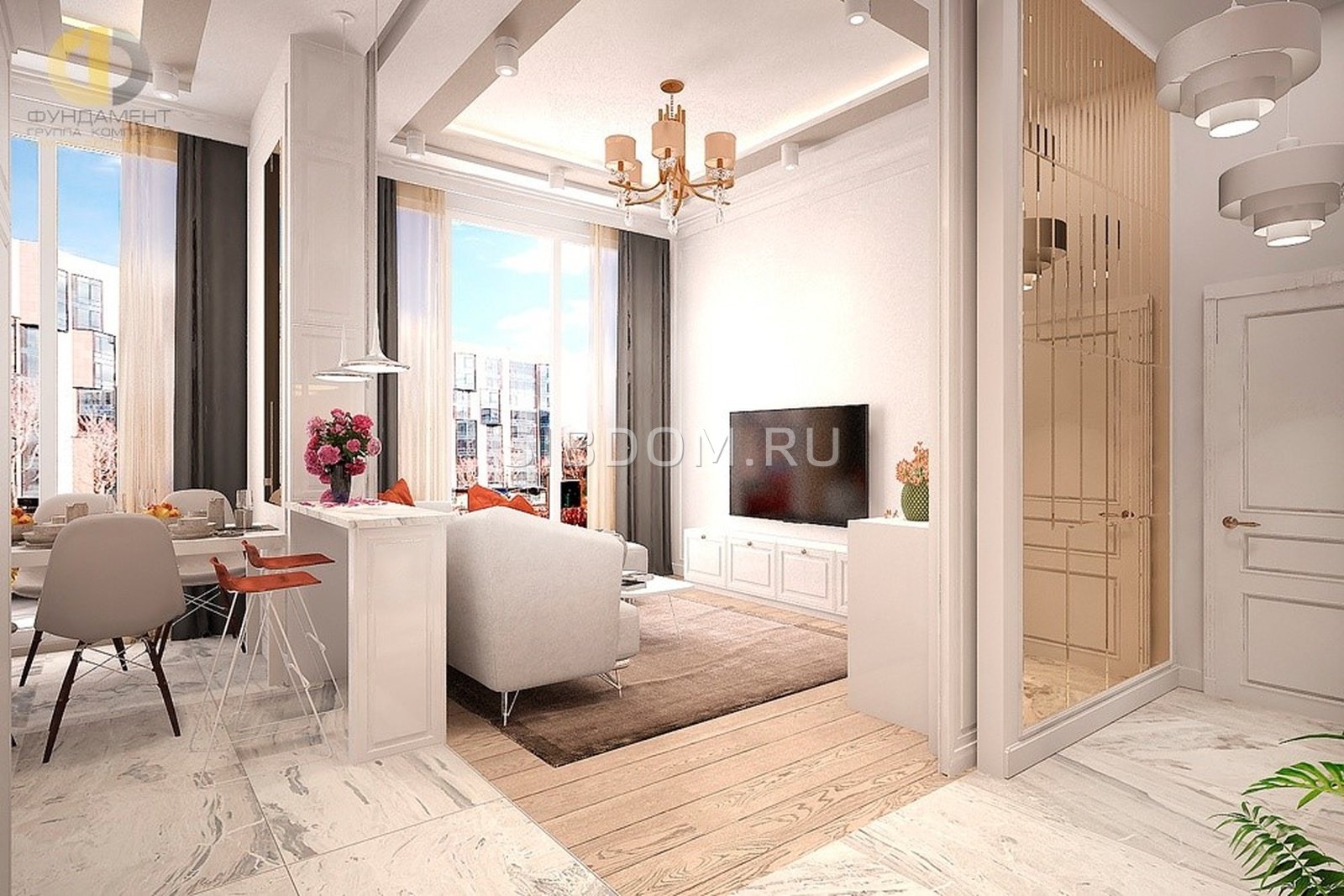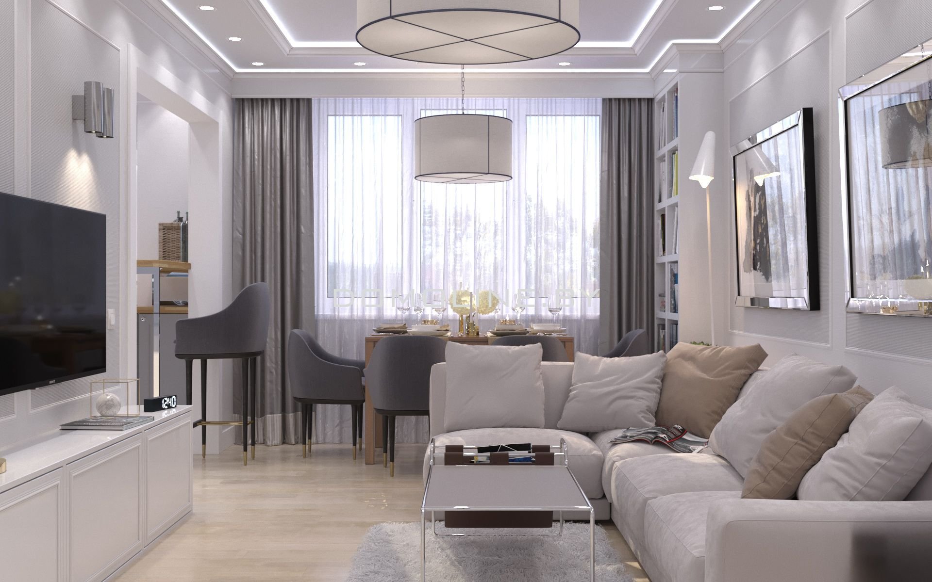 Гостиная 16 кв м Неоклассика