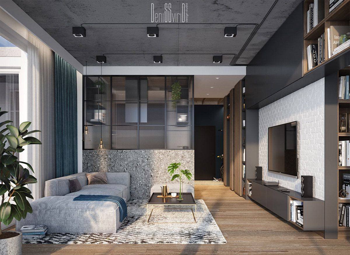 Гостиная лофт 16 кв м