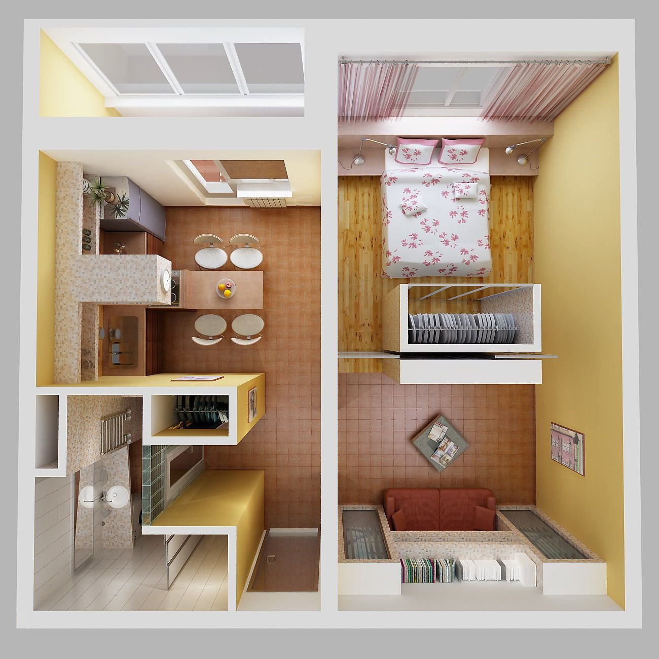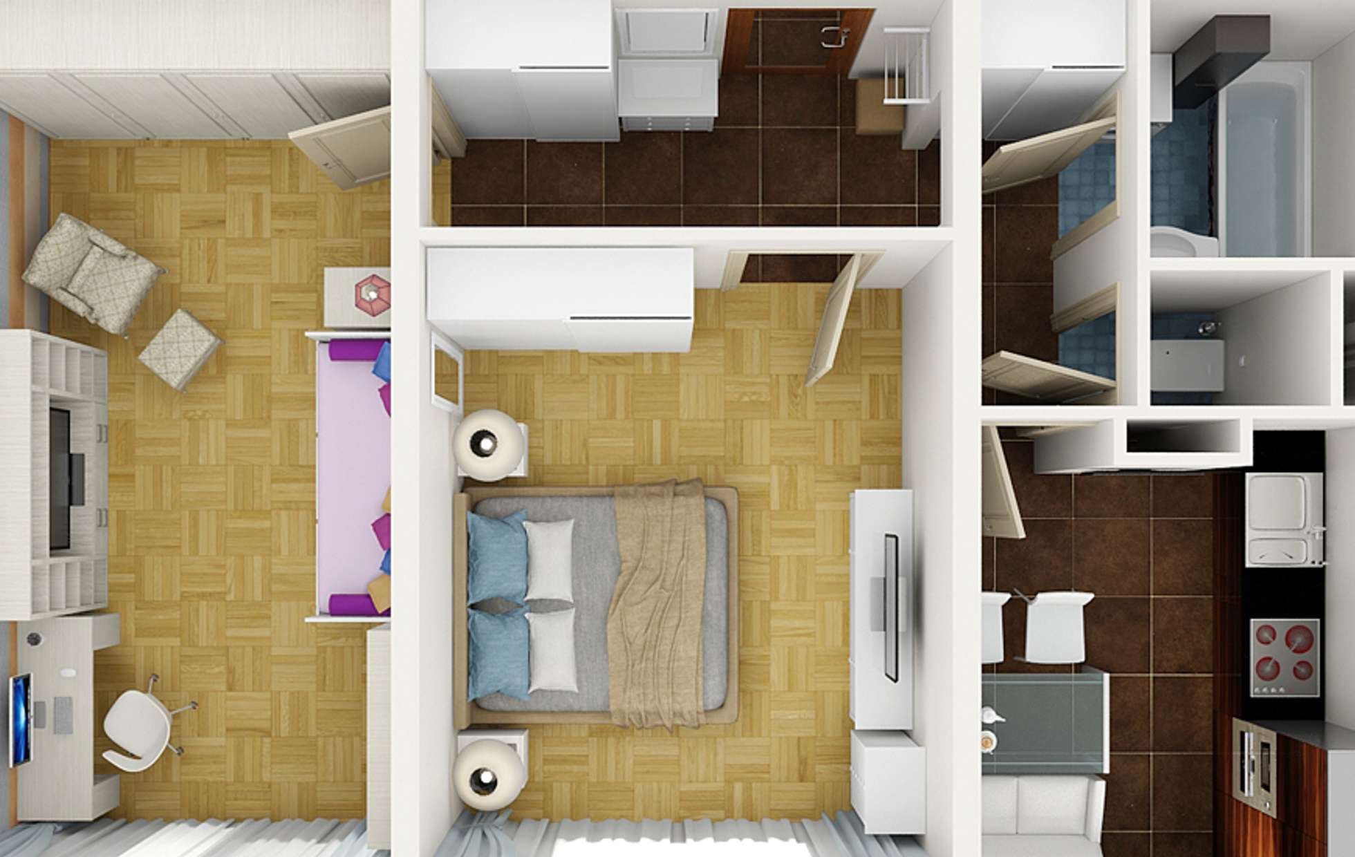 Интерьер двухкомнатной студии