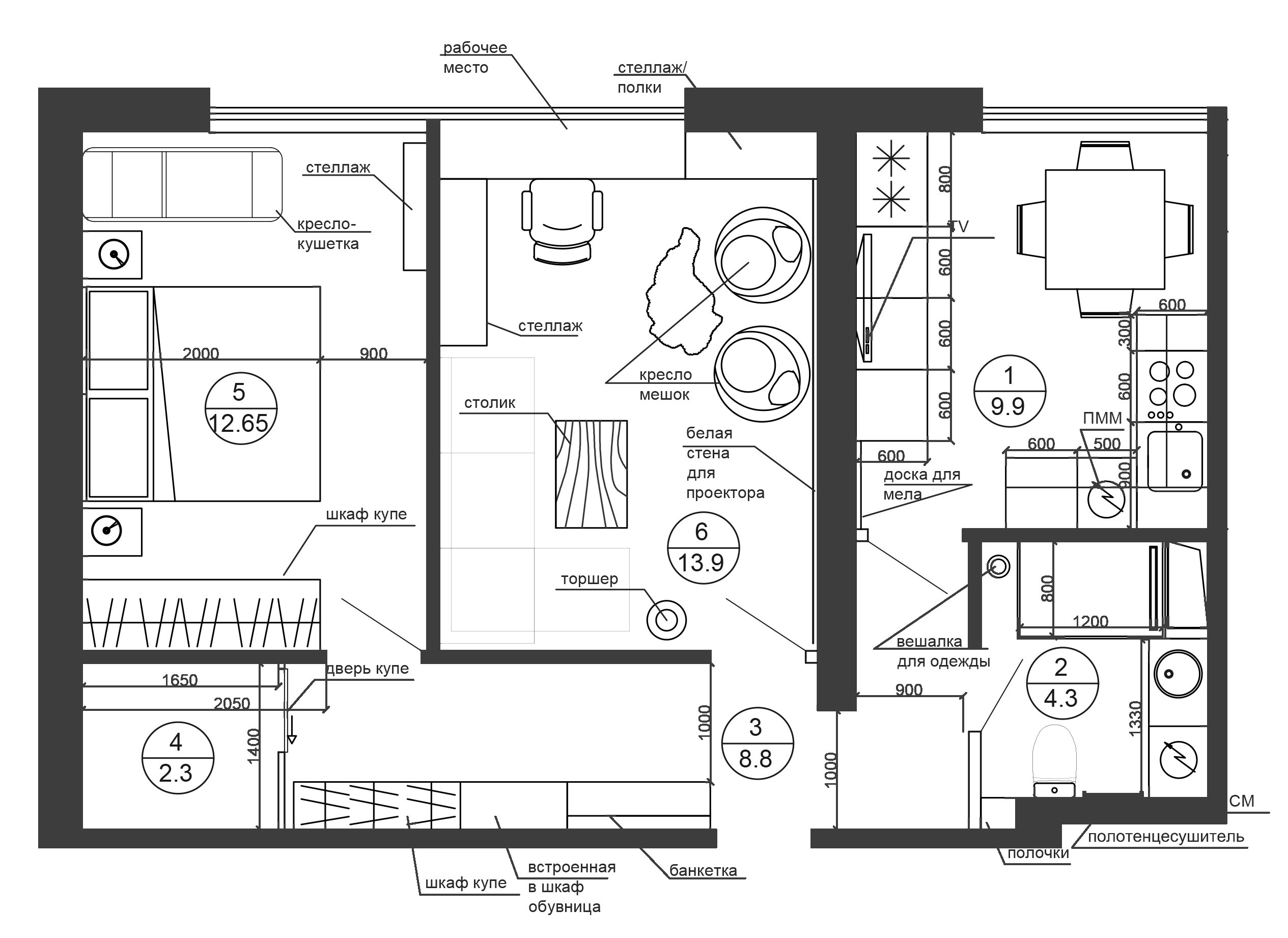 Планировка студии 60 кв.м