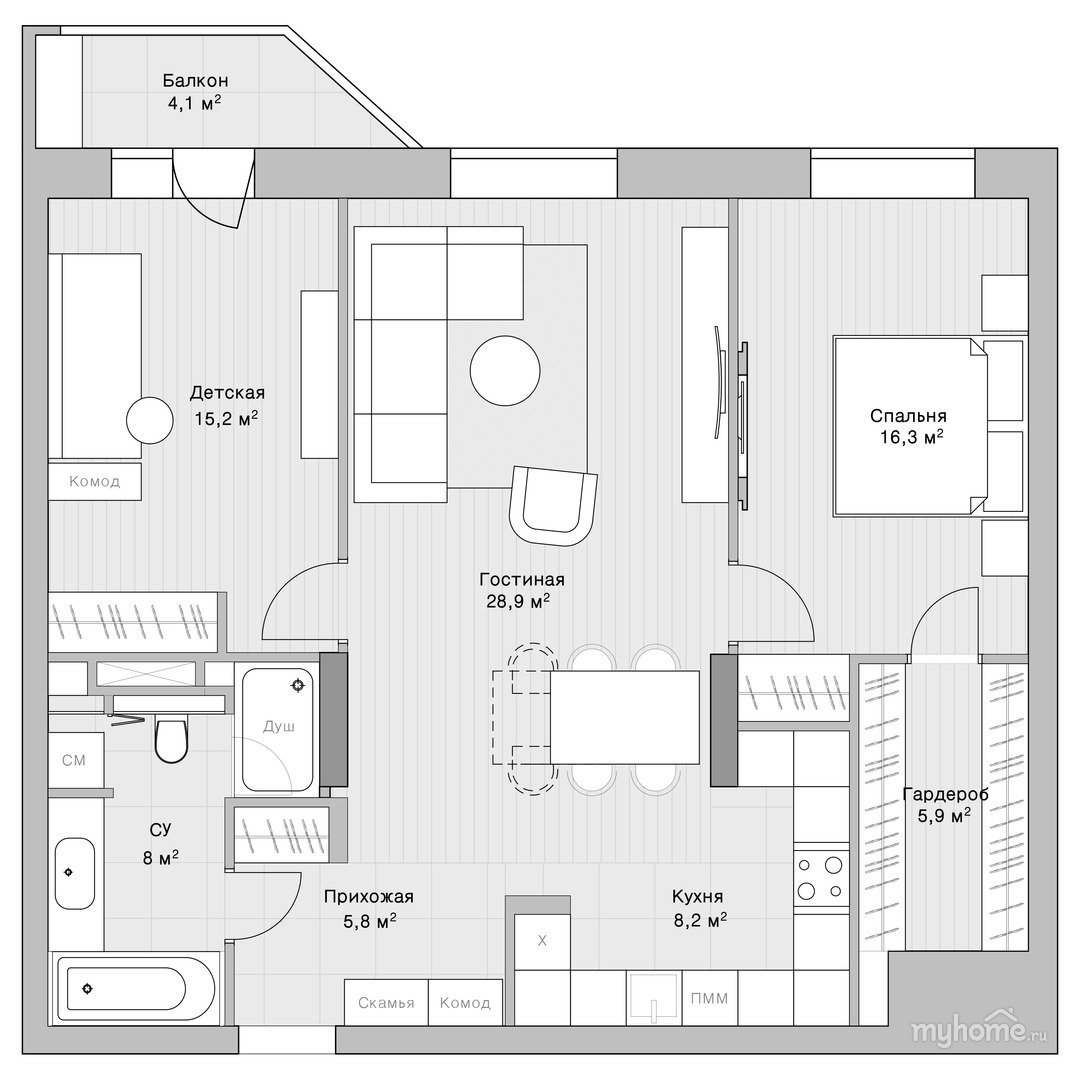 Двушка п3 расстановка мебели