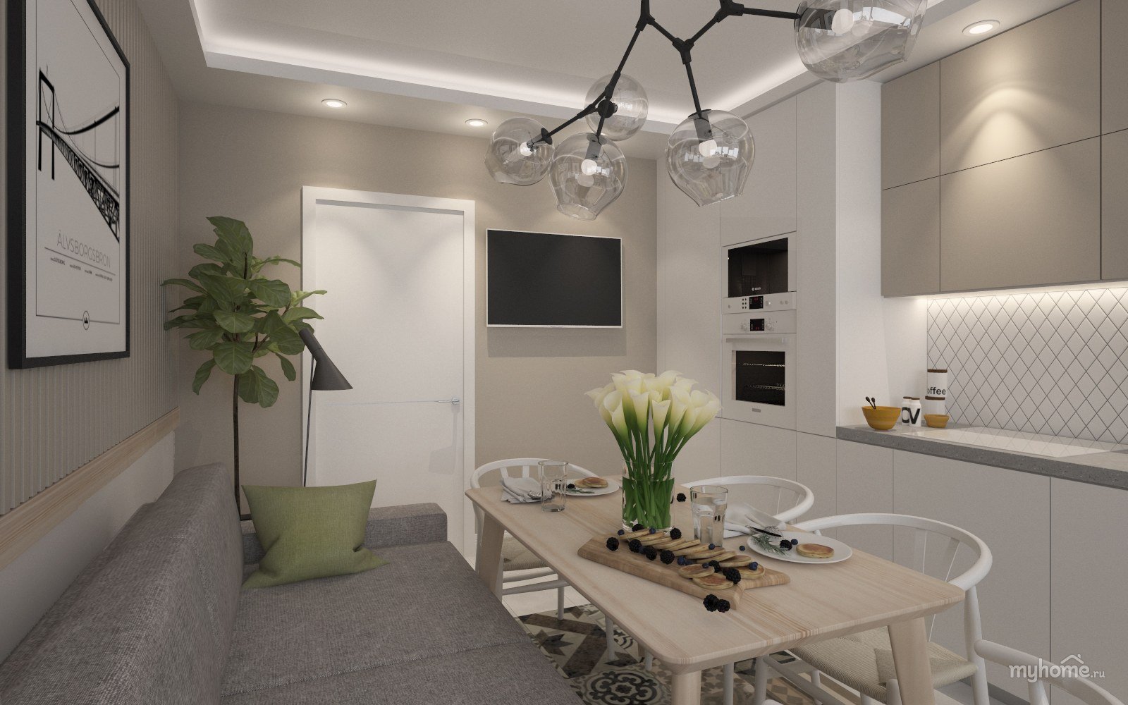 Сканди кухня 6кв м