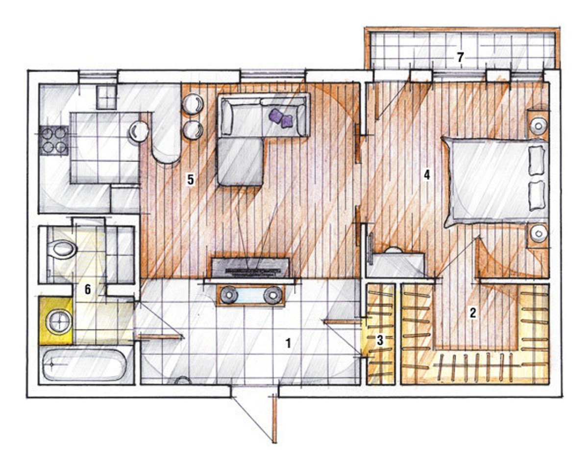Перепланировка двухкомнатной сталинки 56 кв.м