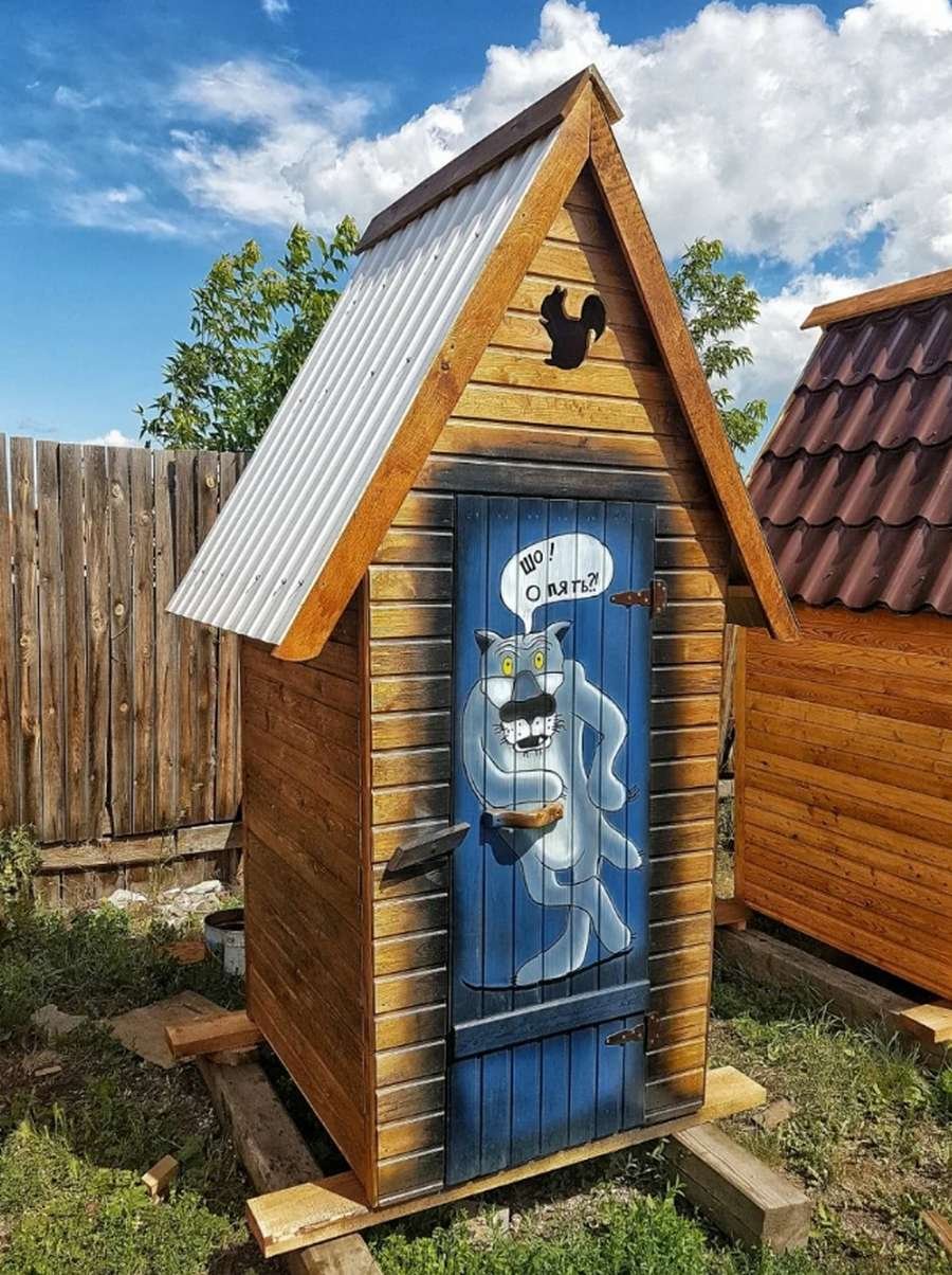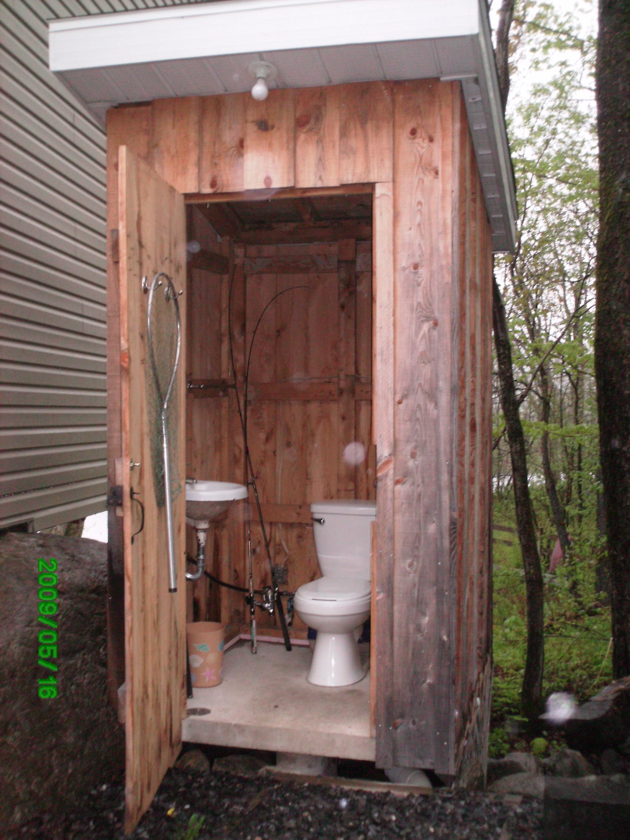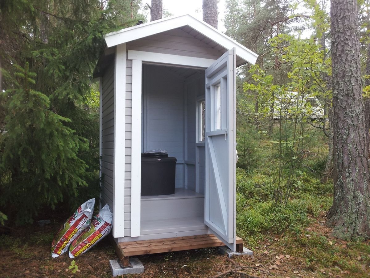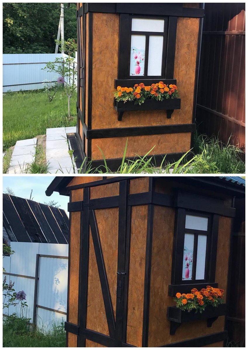 Садовый туалет бочонок а сзади. Него душевая на участке