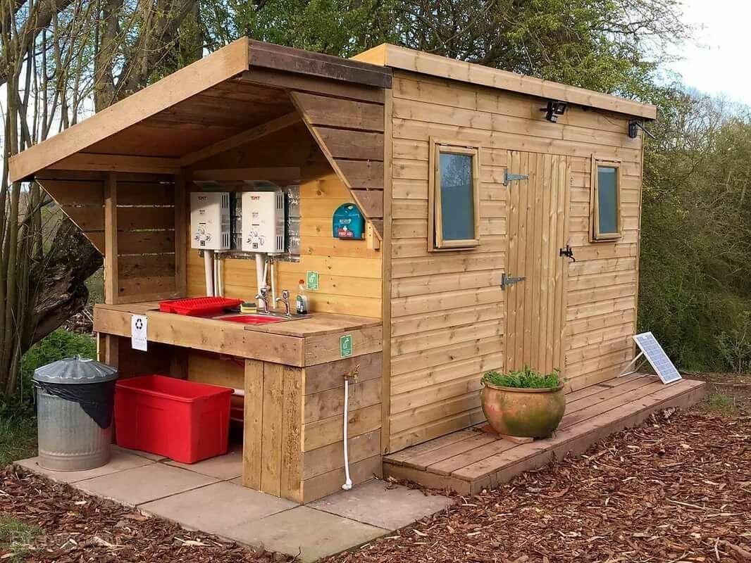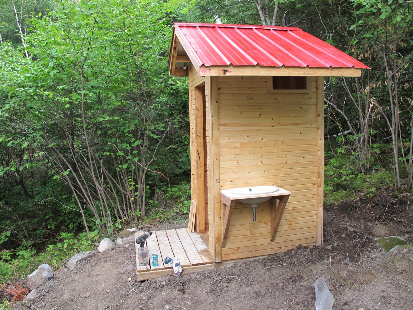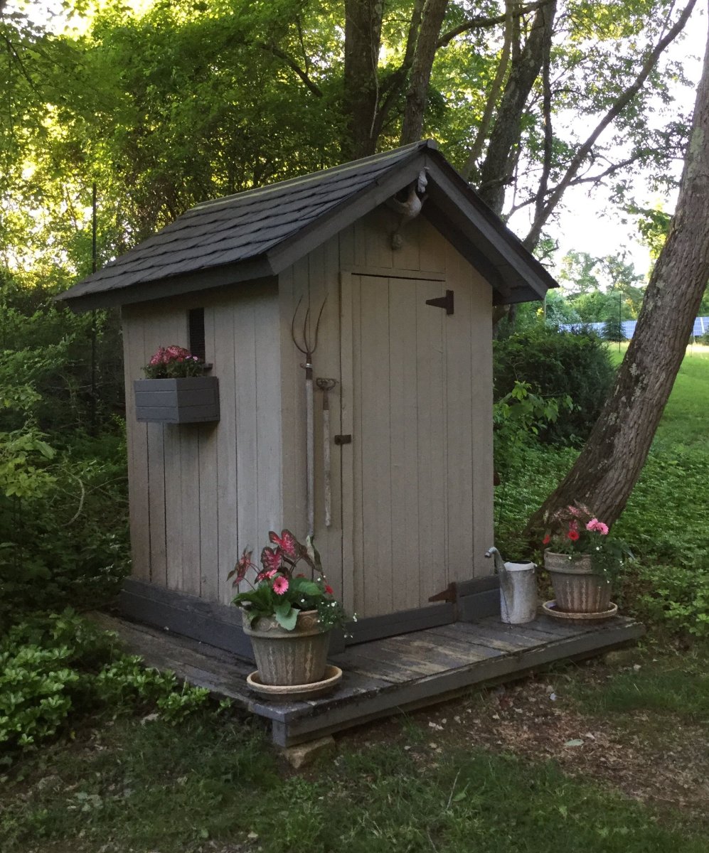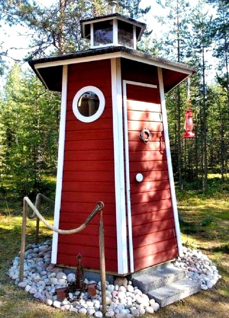 Садовый туалет бочонок а сзади. Него душевая на участке