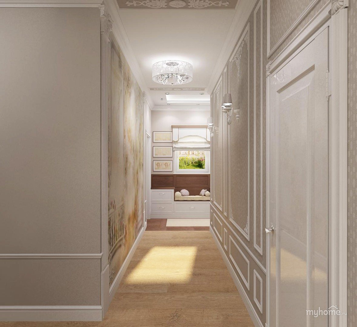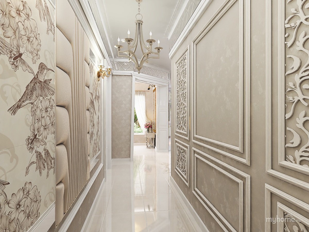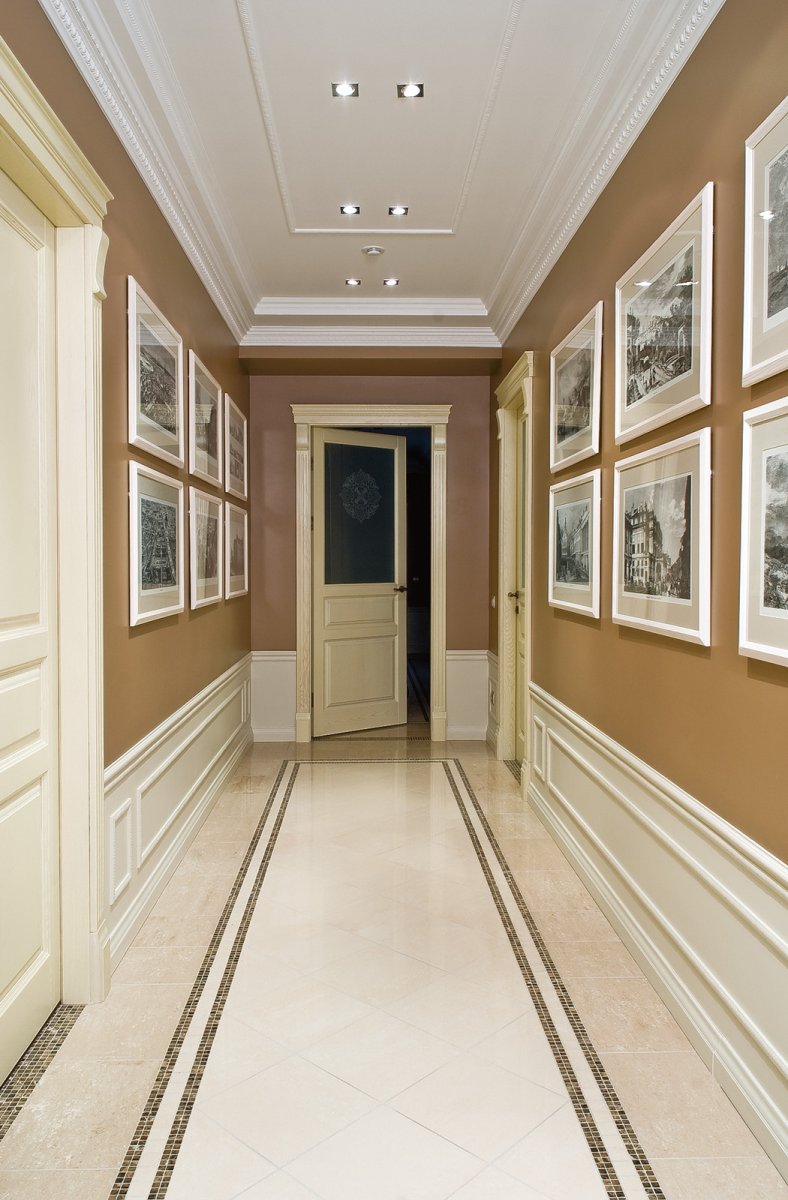 Коридор с молдингами на стенах