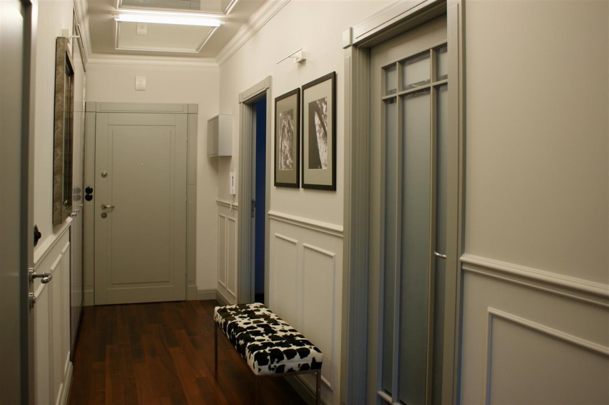 Прихожая с молдингами на стене