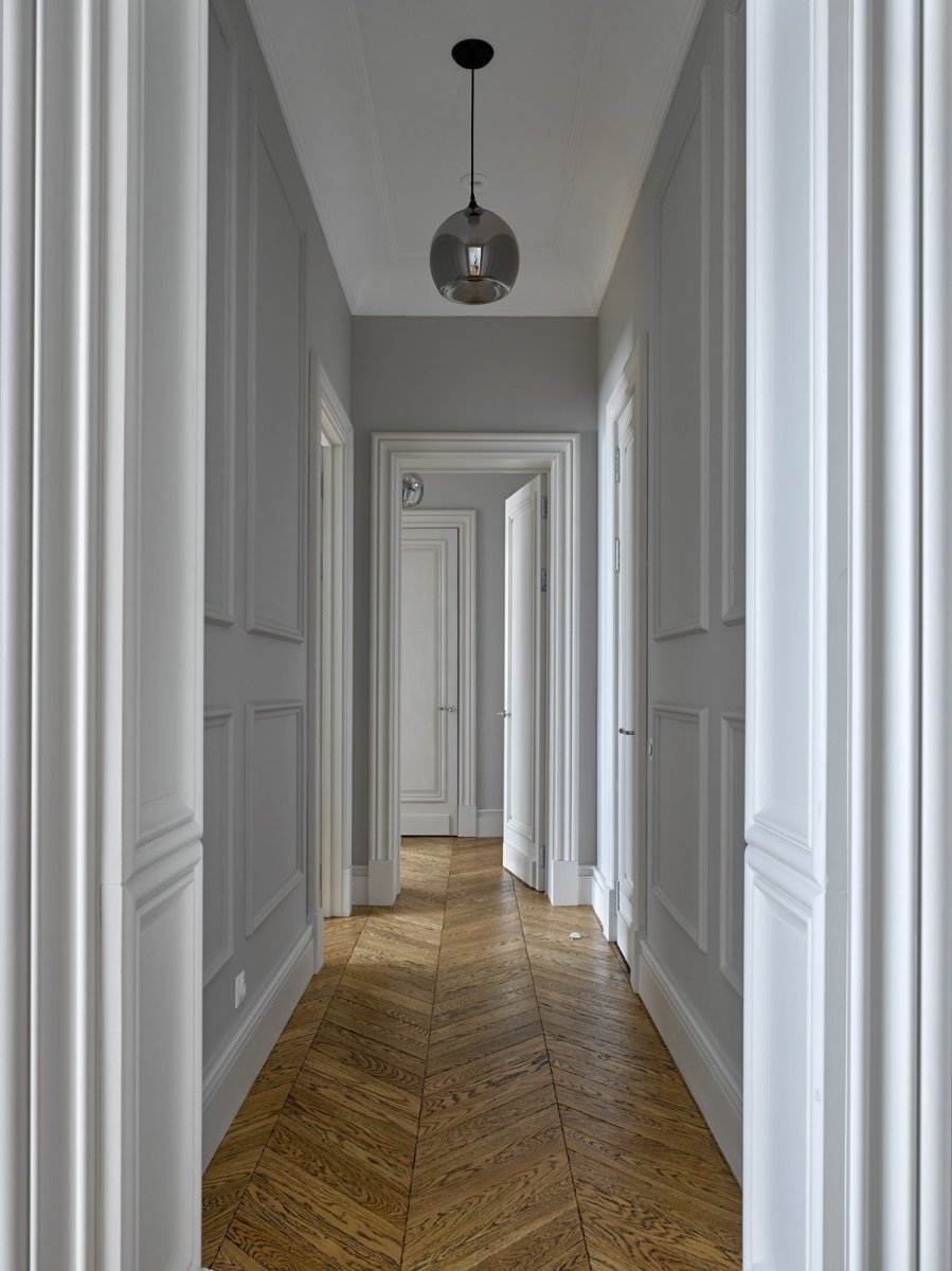 Обойные молдинги в длинном коридоре