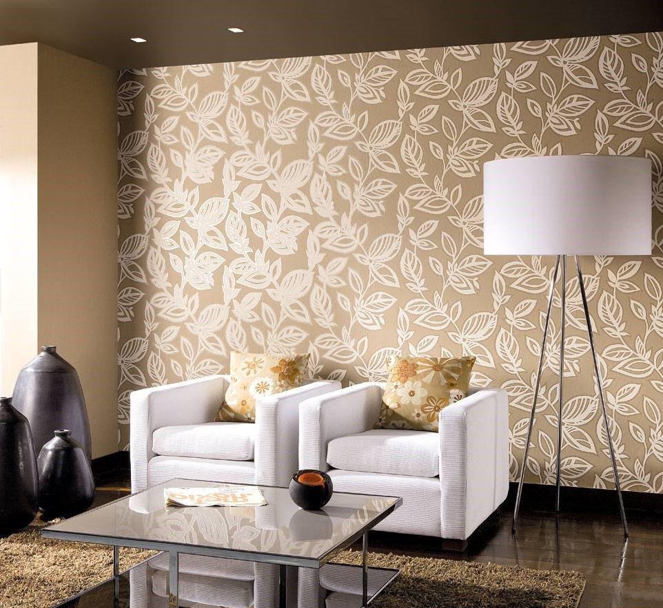 Обои в бежевых тонах в гостиную