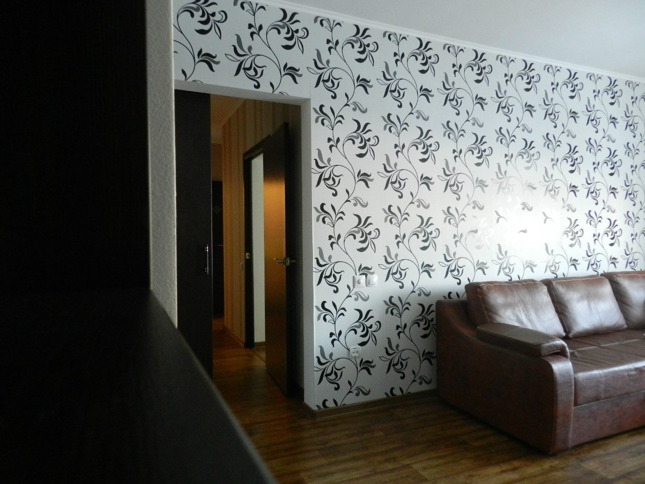 Сочетание темных и светлых обоев в гостиной