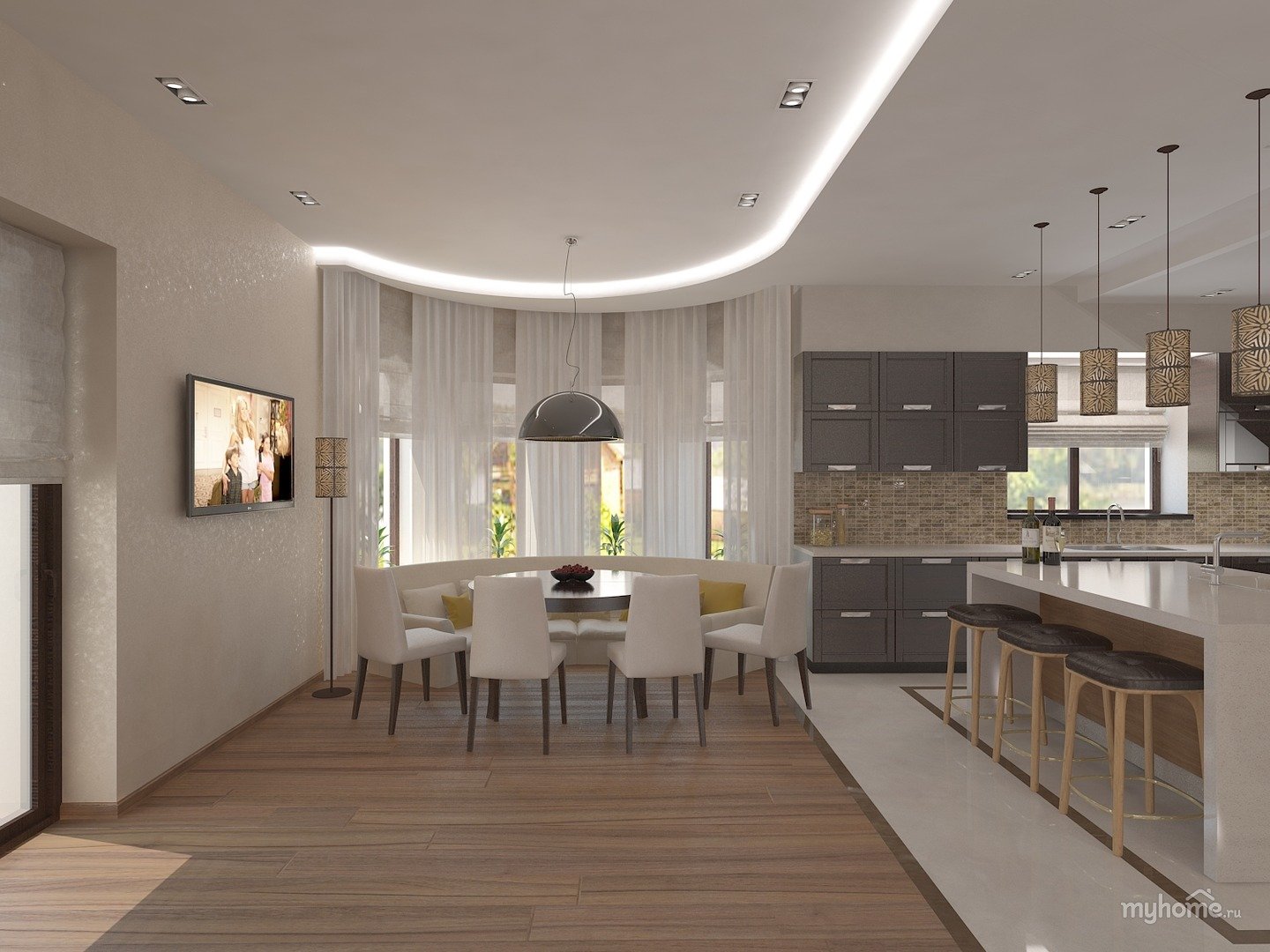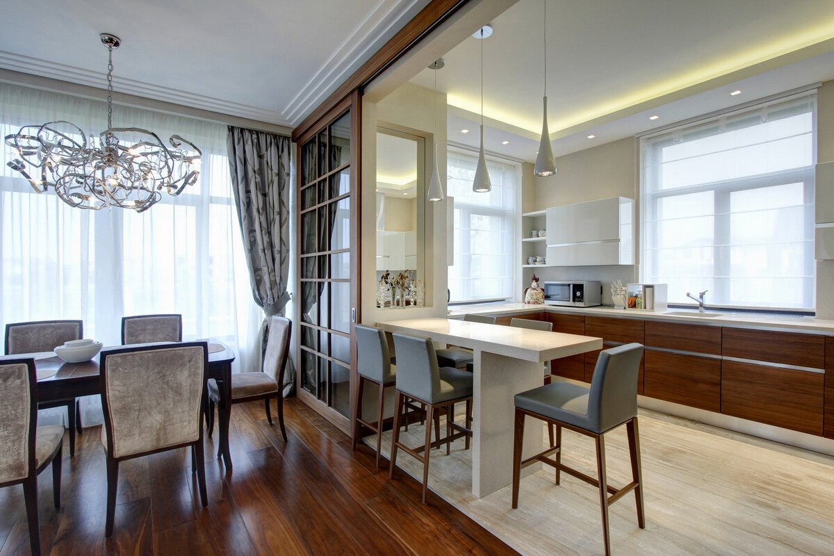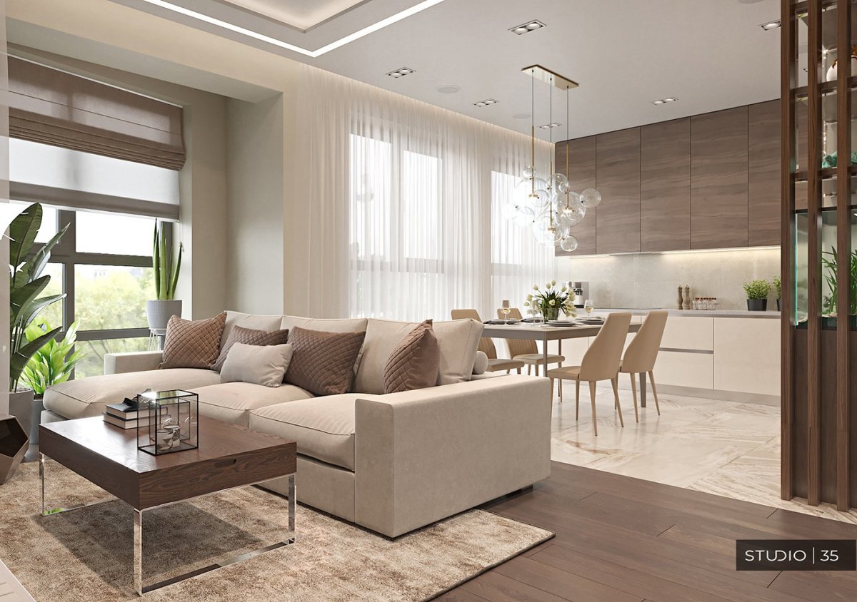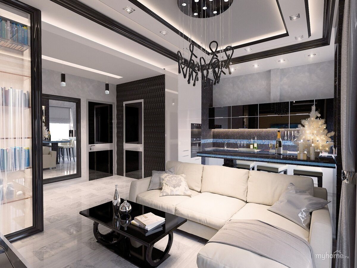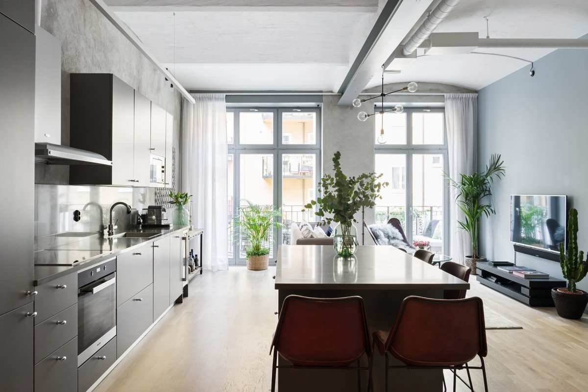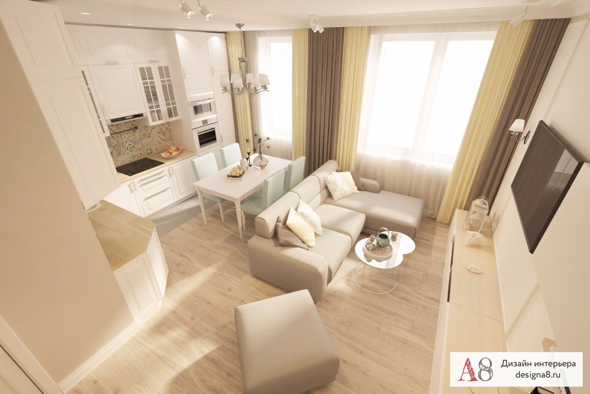 Кухня-гостиная в скандинавском стиле 20 кв.м