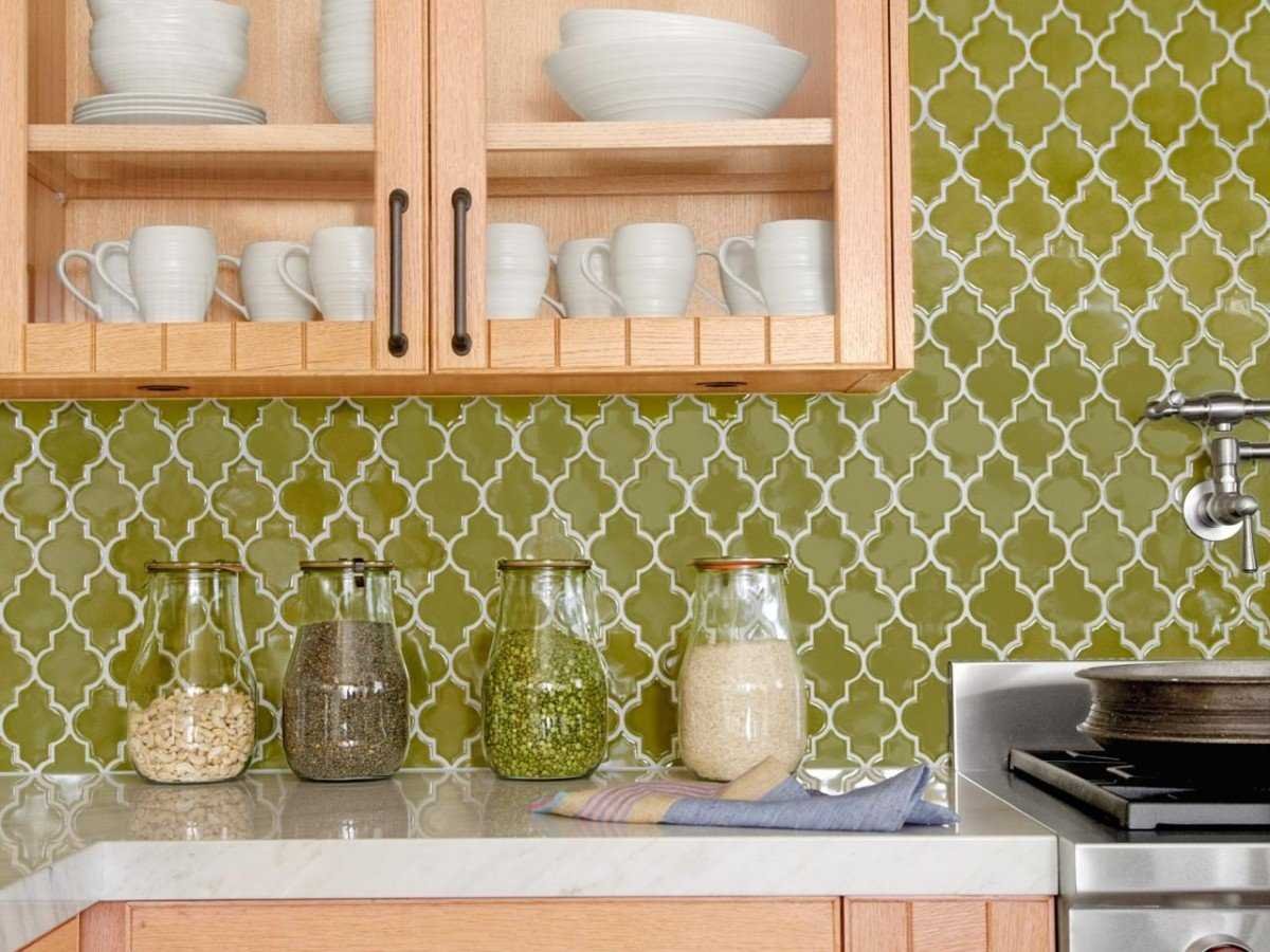 Зеленая плитка для кухни на фартук