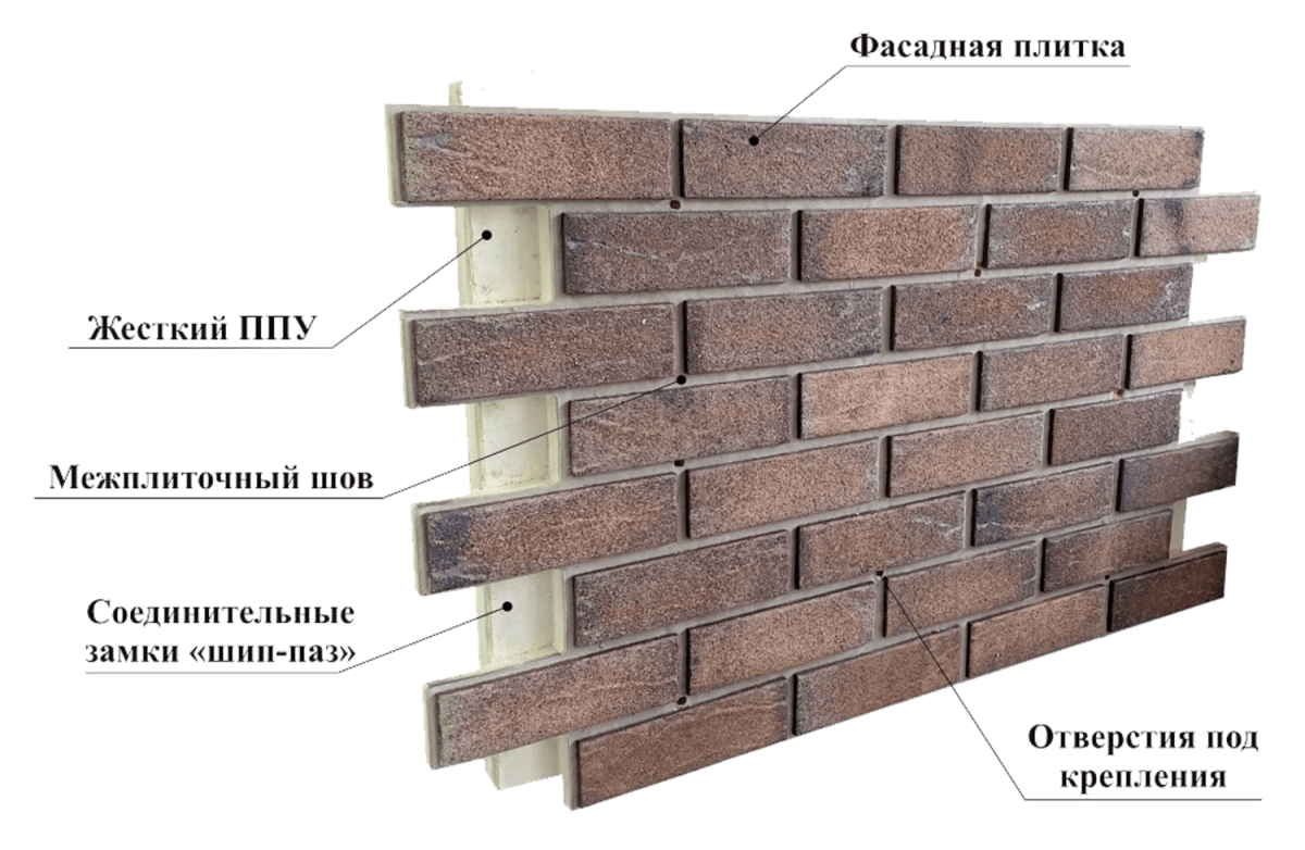 Клинкерные фасадные термопанели из пенополиуретана (ППУ 60) Щёкино