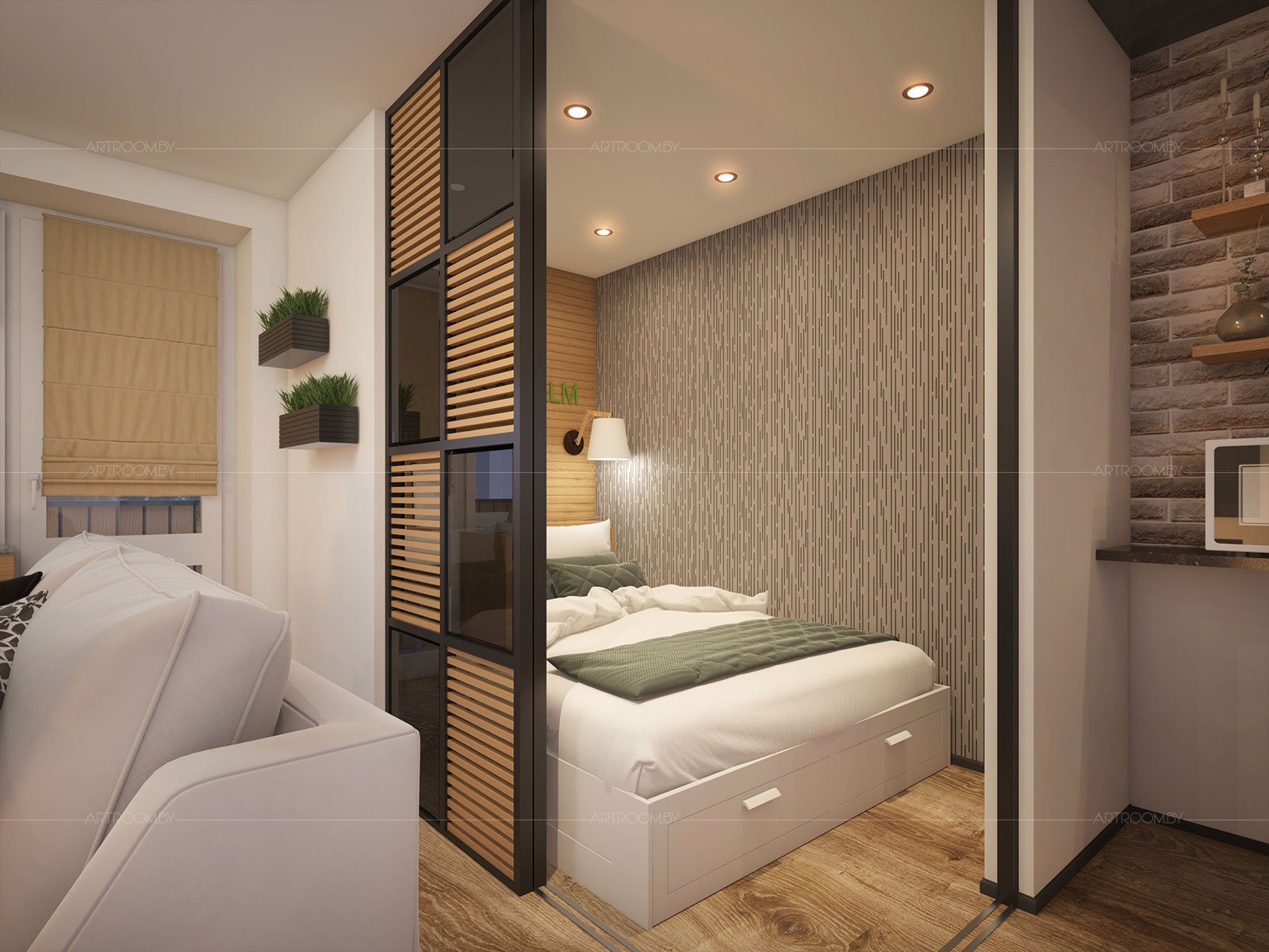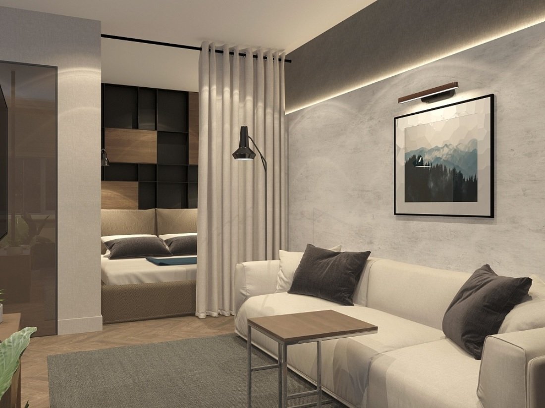 Спальня-гостиная с перегородкой