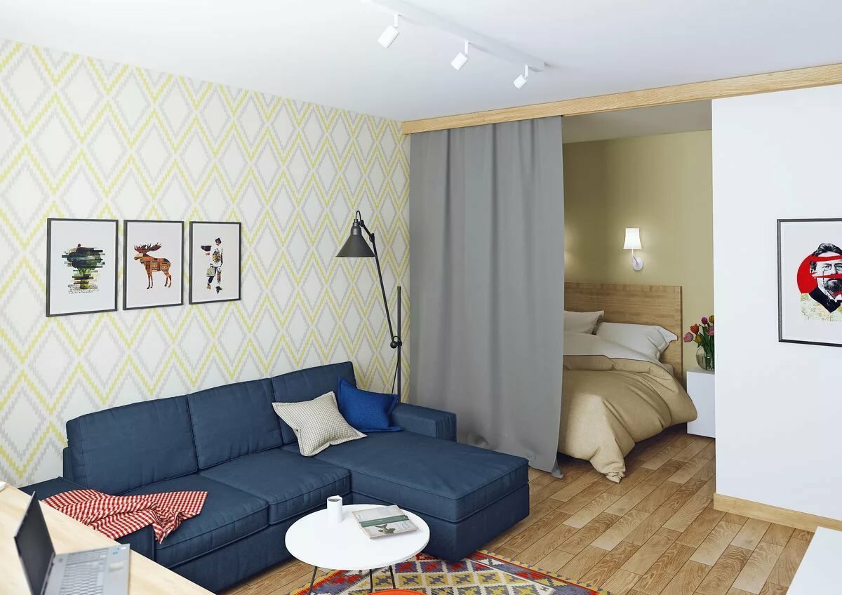 Зонирование студии 30 кв.м перегородки
