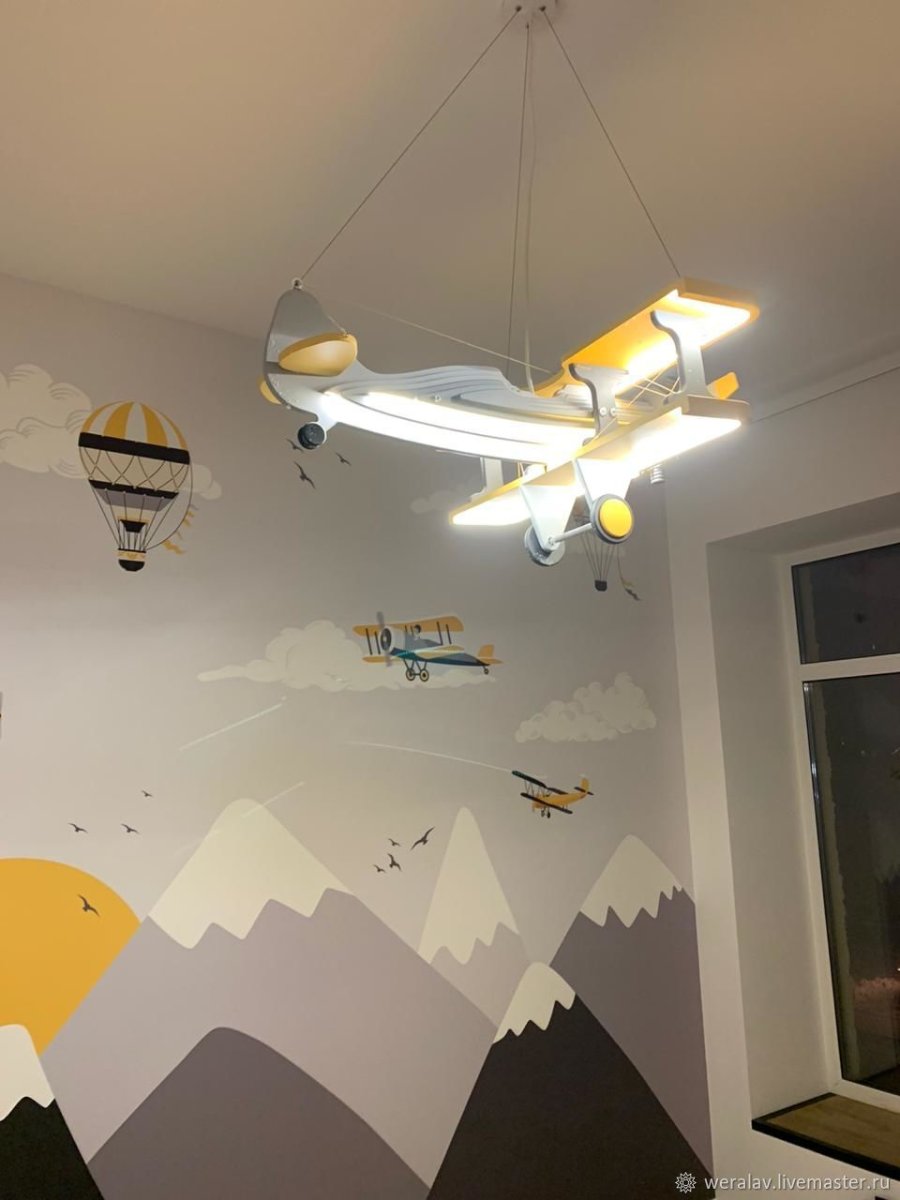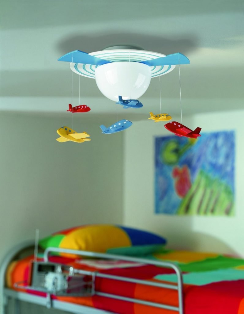 Люстра потолочная детская самолетик Donolux Baby tecnica, 1 лампа, никель, белый