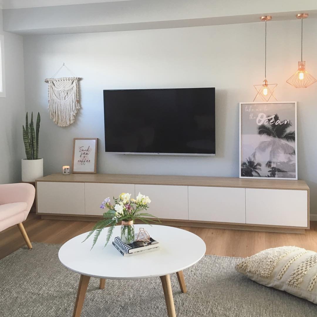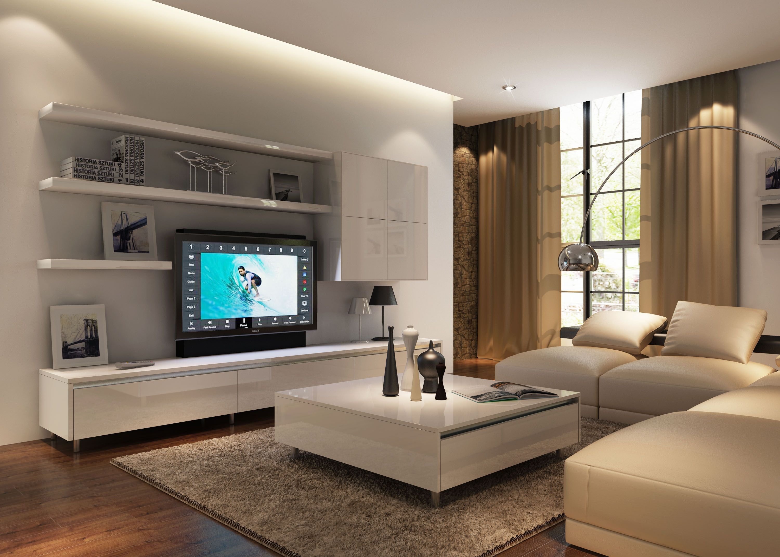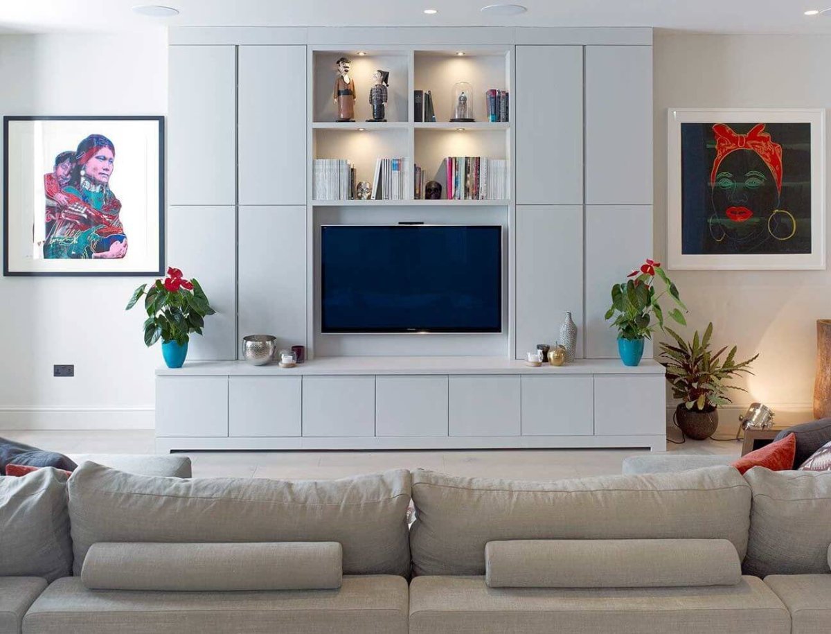 Пространство под телевизором в гостиной