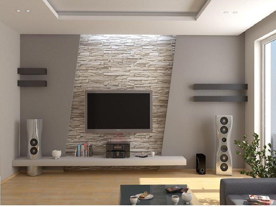 Декоративная стена в гостиной с телевизором
