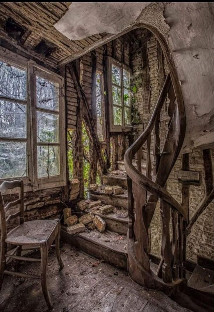 Лестница в заброшенном доме