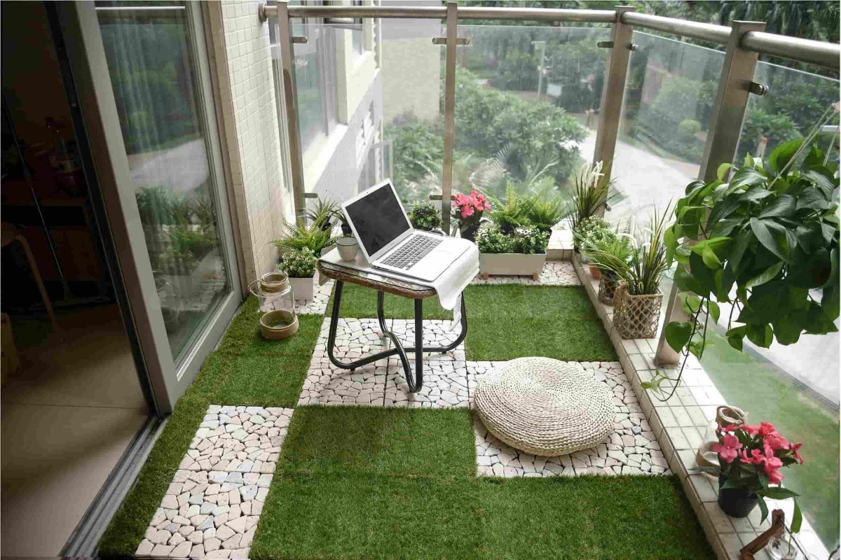 Artificial grass in balcony