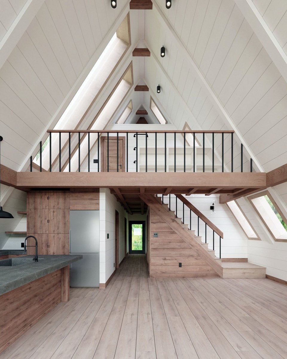 Интерьер загородного дома а-фрейм