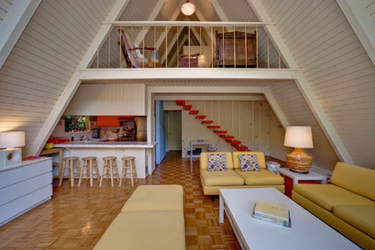 Интерьер домиков с треугольной крышей