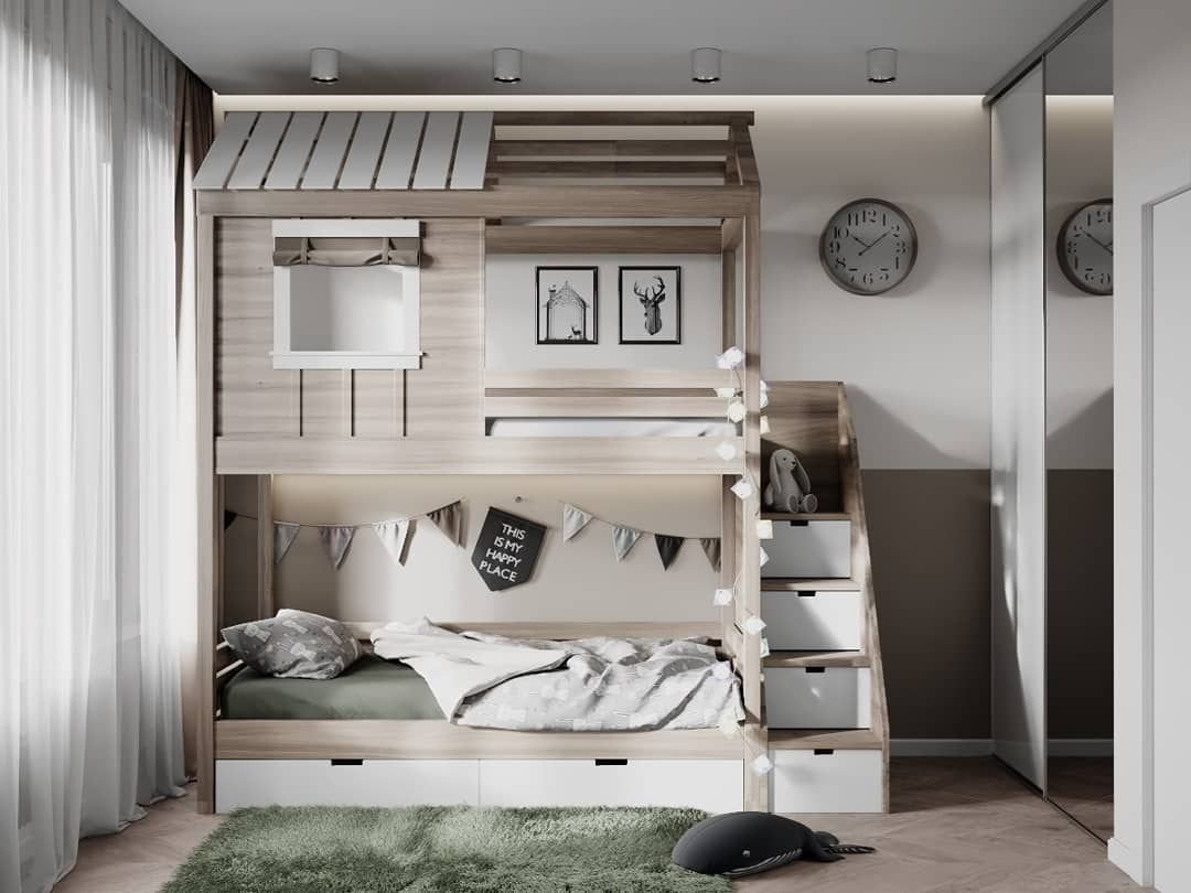 Спальня для 2-х детей разнополых с 1 двухъярусной кроватью