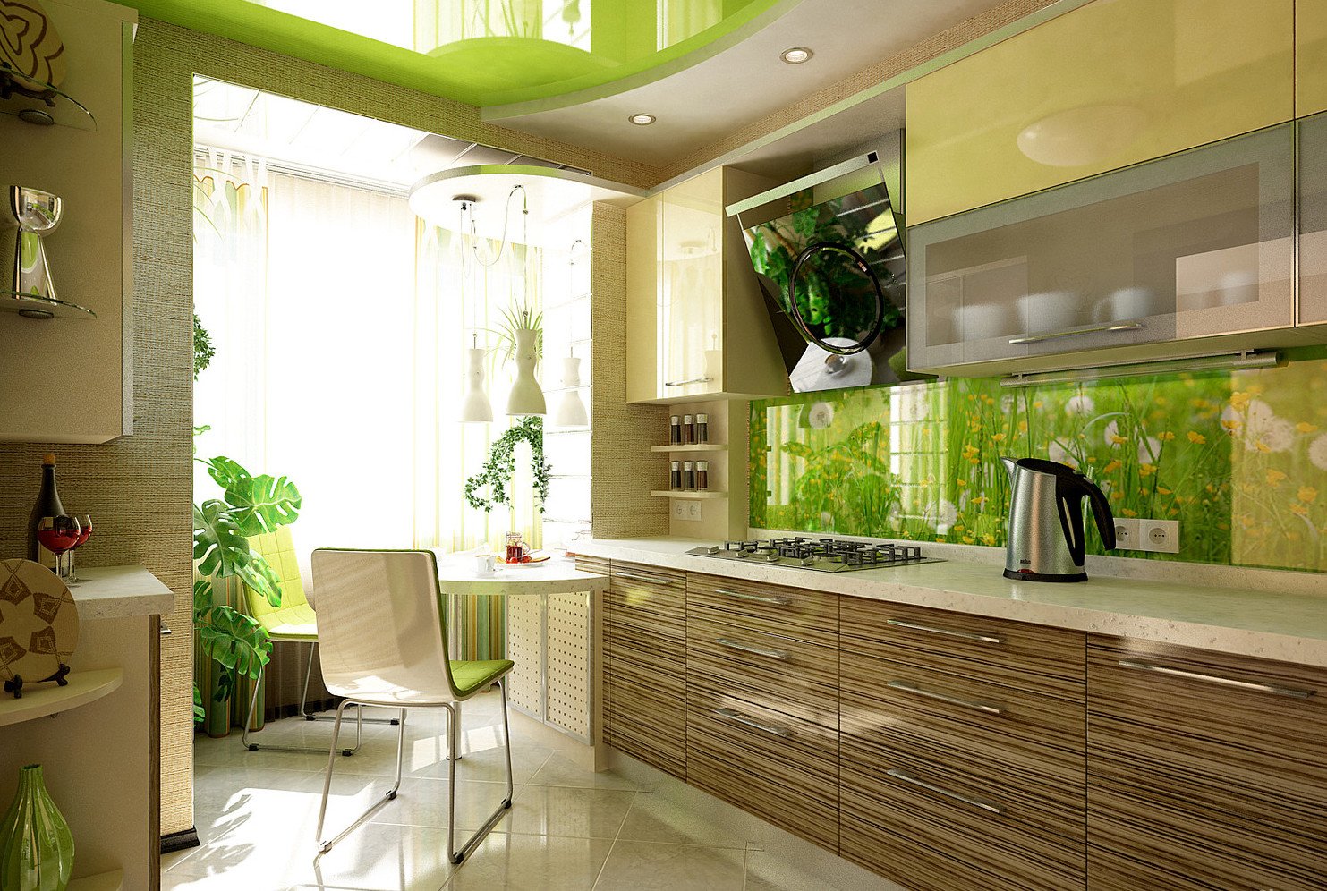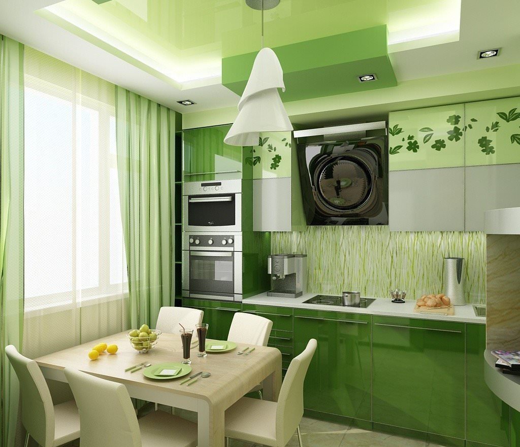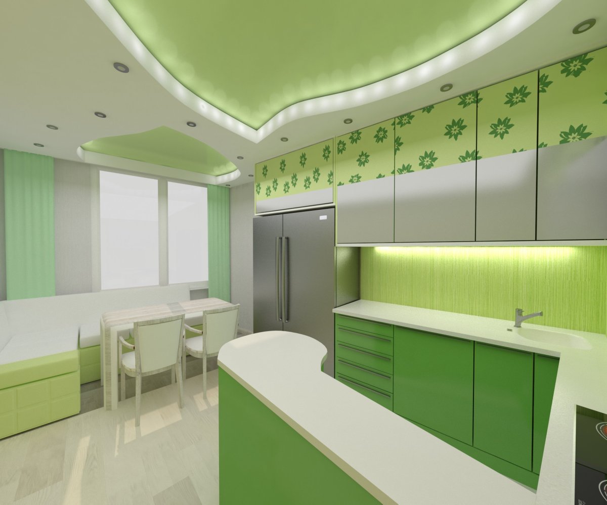 Зеленый потолок на кухне