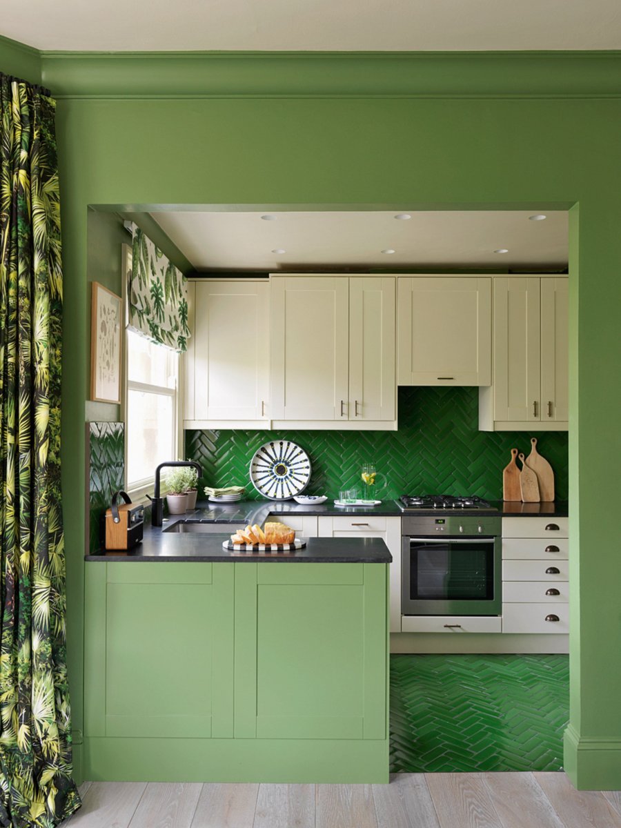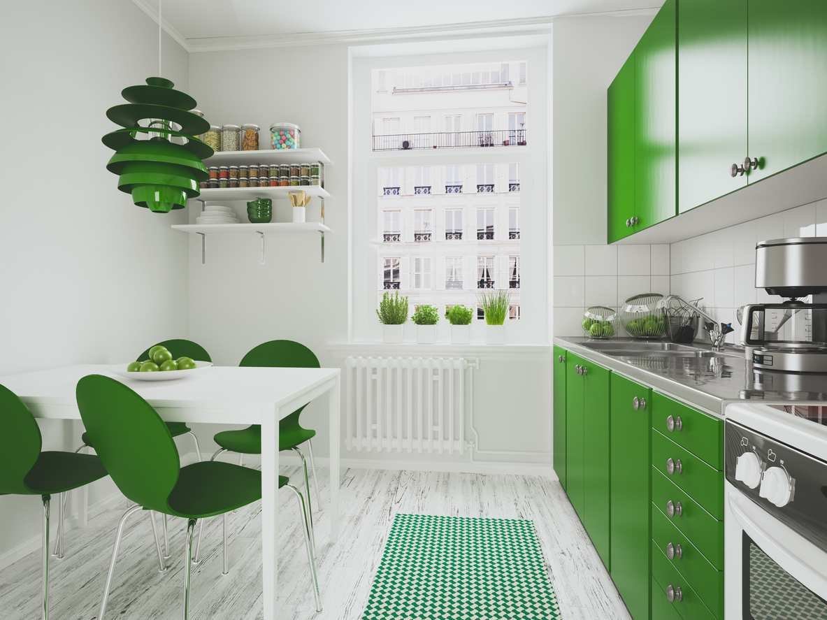 Зеленый цвет в интерьере кухни