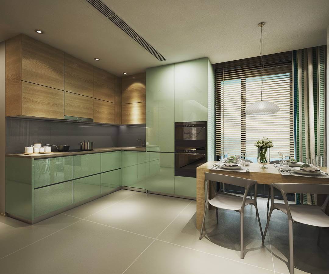 Кухня в фисташковых тонах