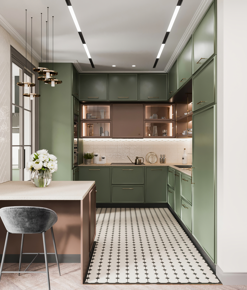 Кухня в зелено-бежевых тонах
