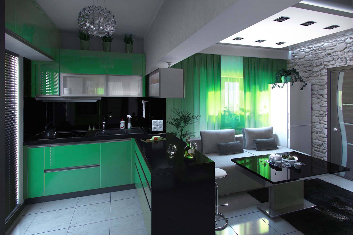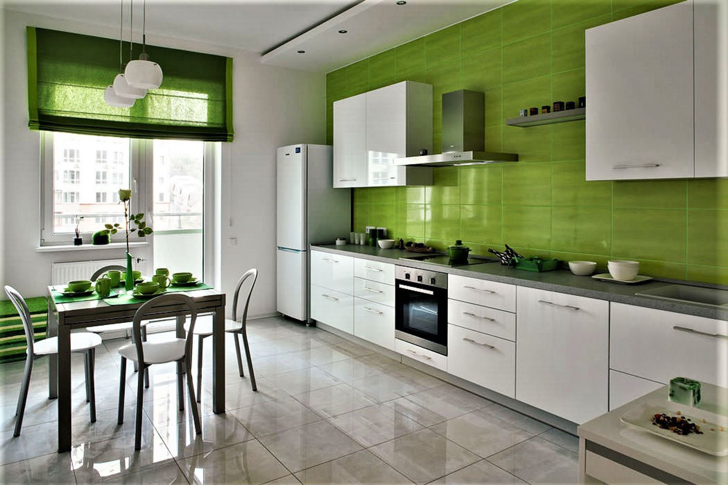 Кухня с зелеными акцентами