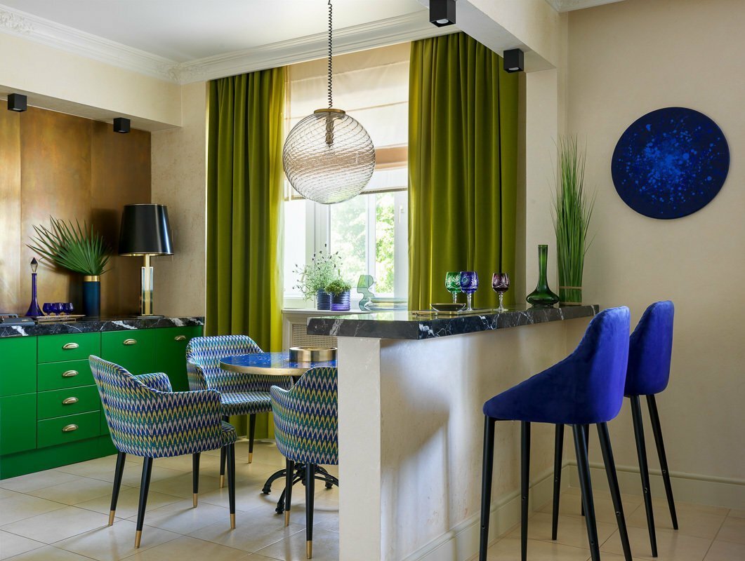 Сочетание синего и зеленого в интерьере