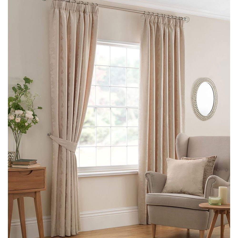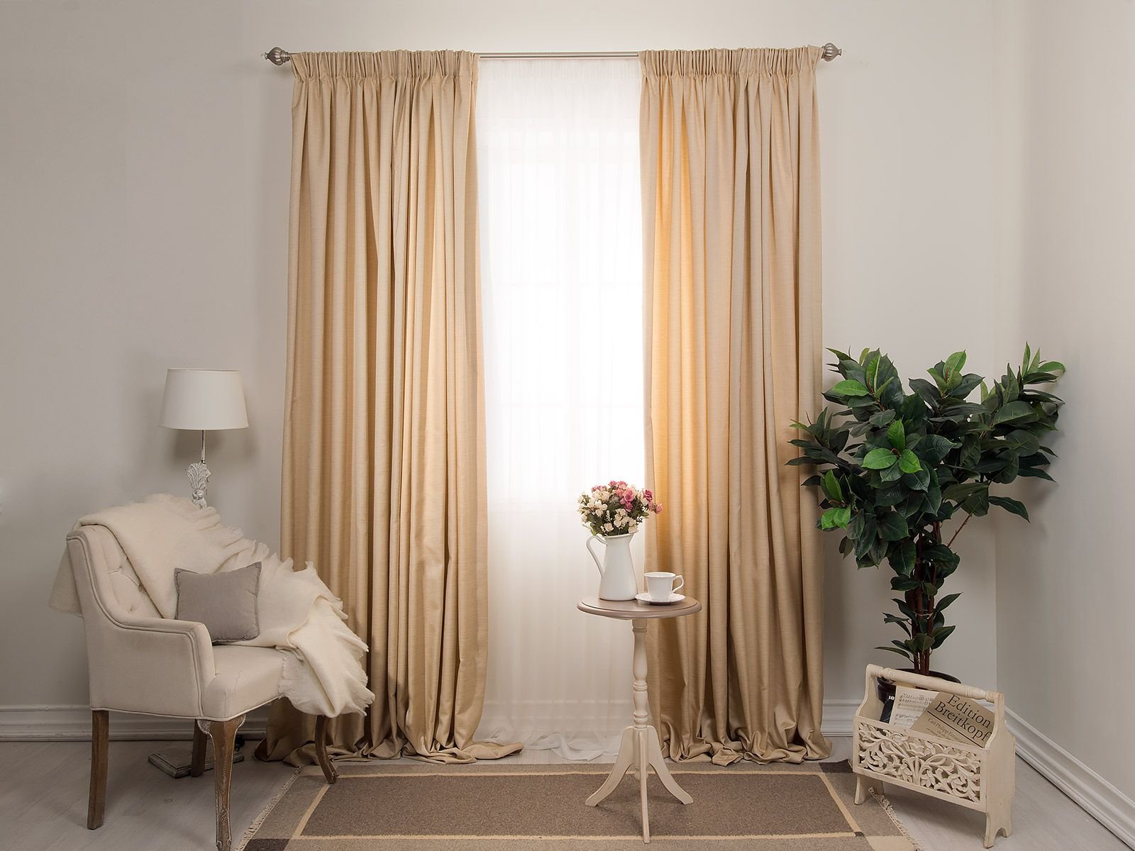 Бежевые портьеры в интерьере