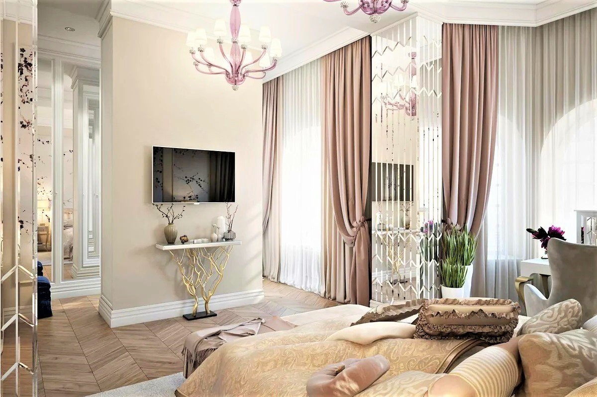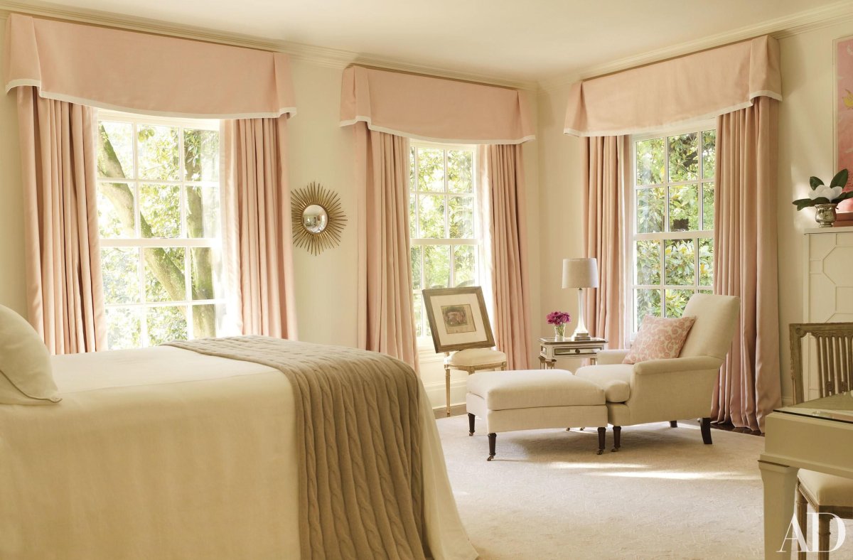 Пудровые шторы в интерьере