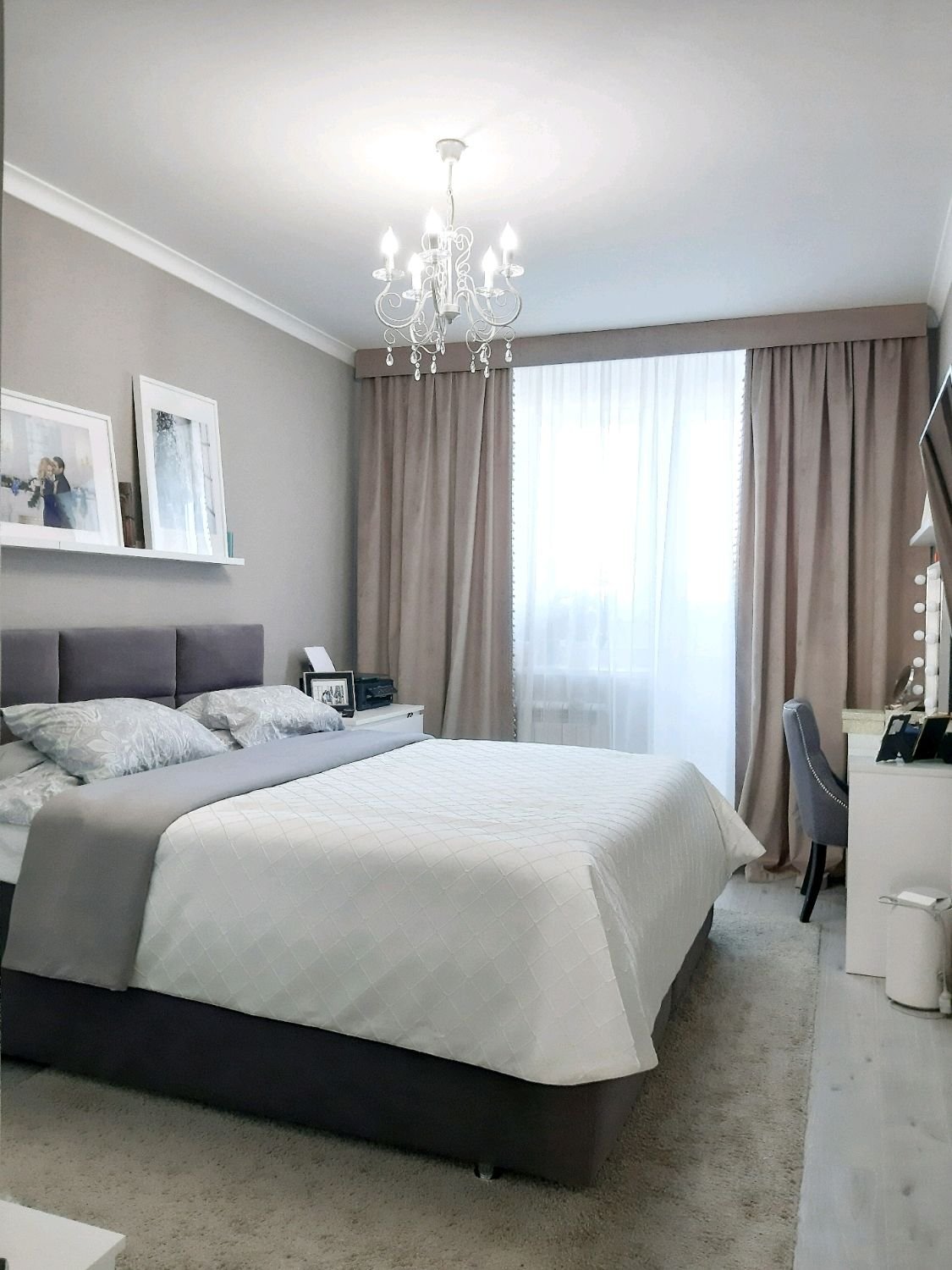 Спальня в серо пудровых тонах
