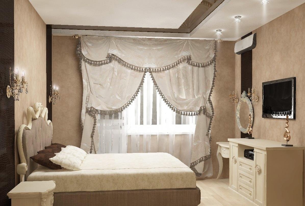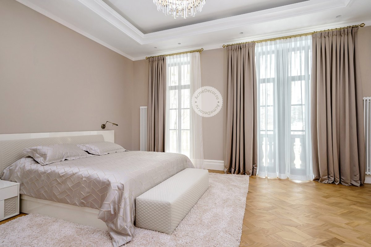 Шторы для спальни в бежевых тонах