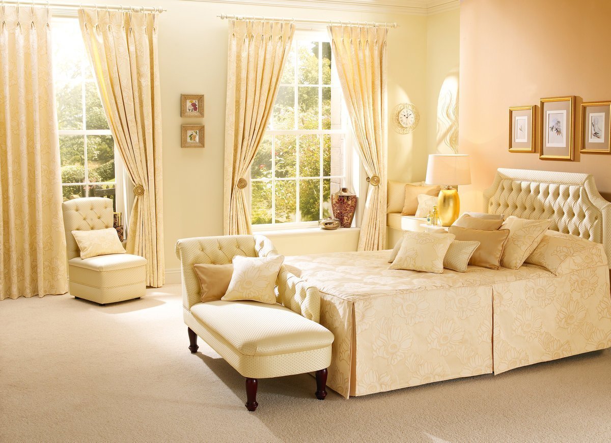 Кремовые шторы в спальню