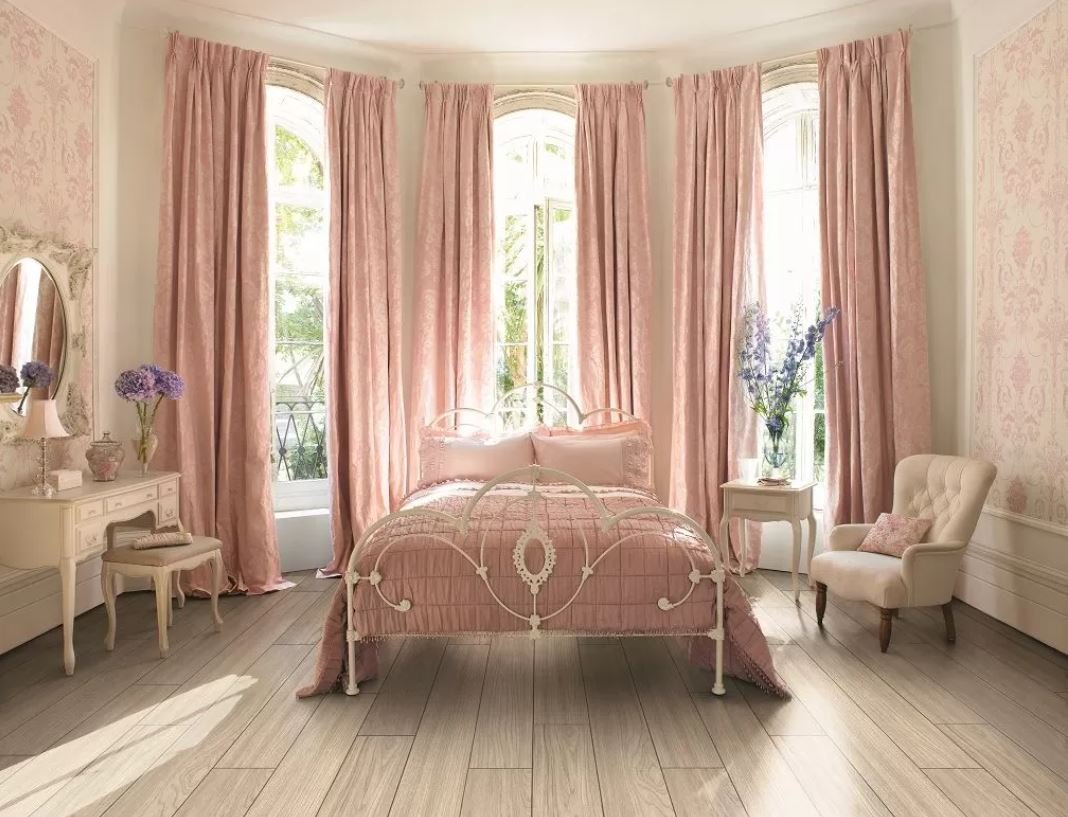 Розовые шторы в спальню