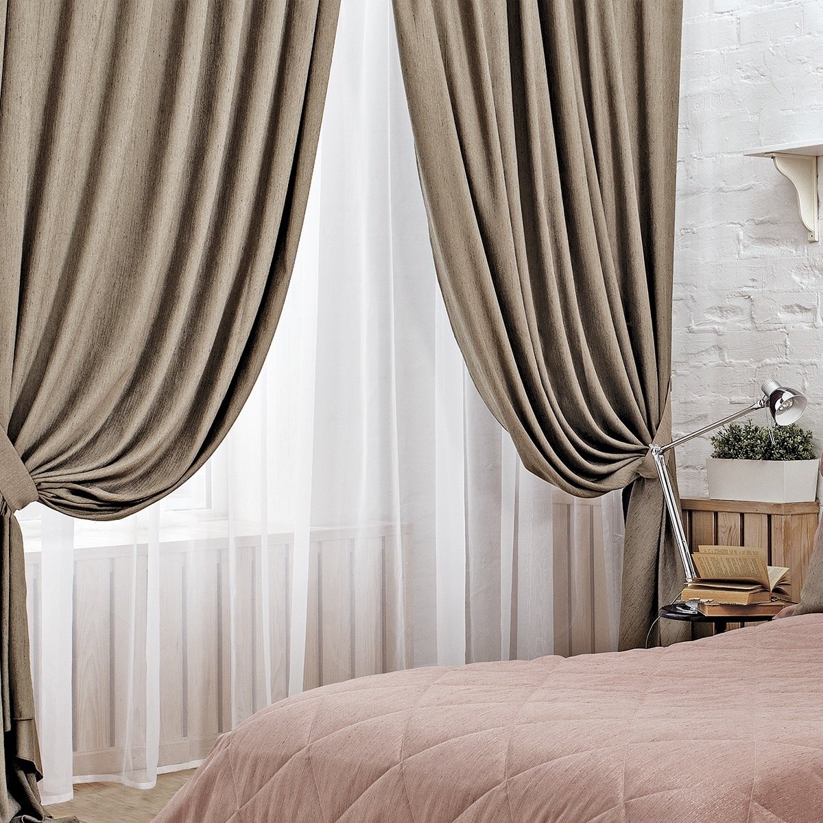 Шторы пудрового цвета в спальню