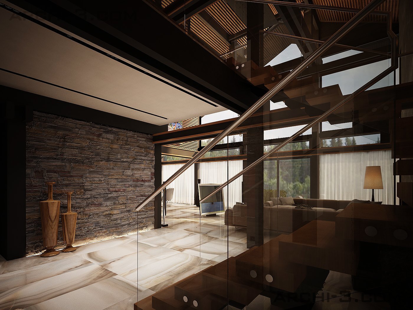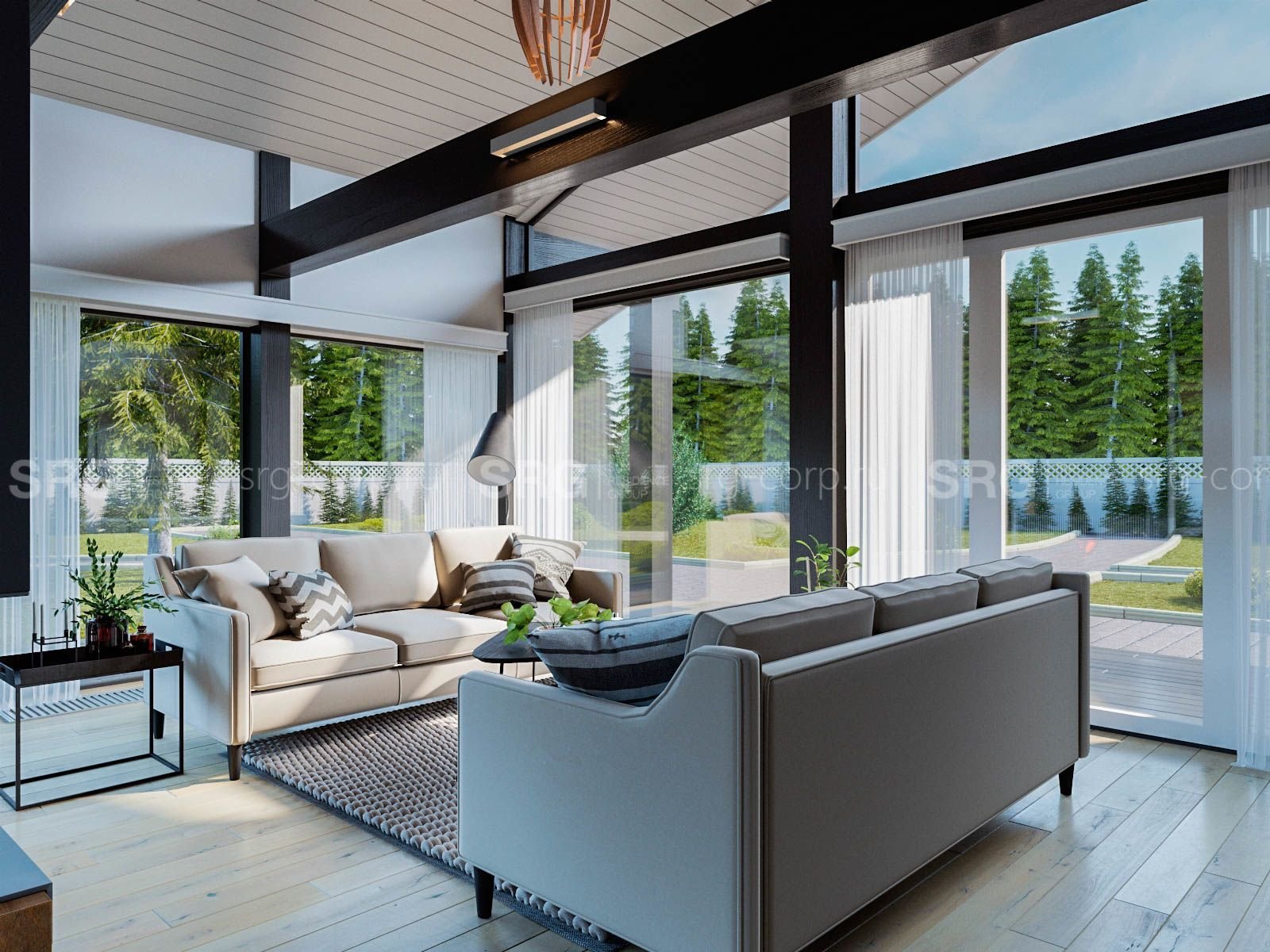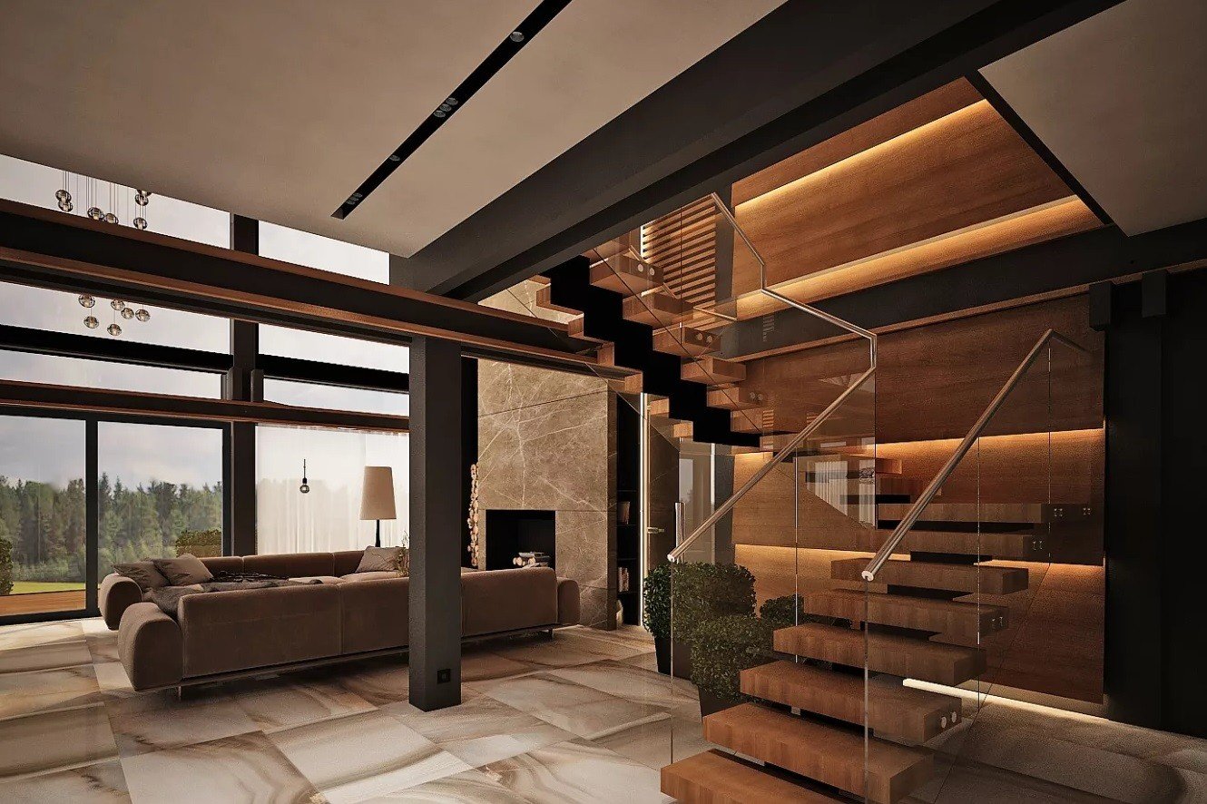 Одноэтажный дом в стиле лофт с панорамными окнами