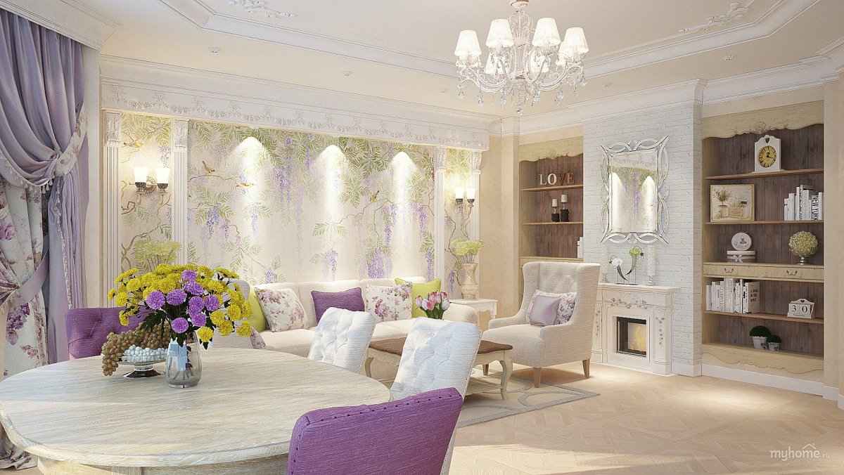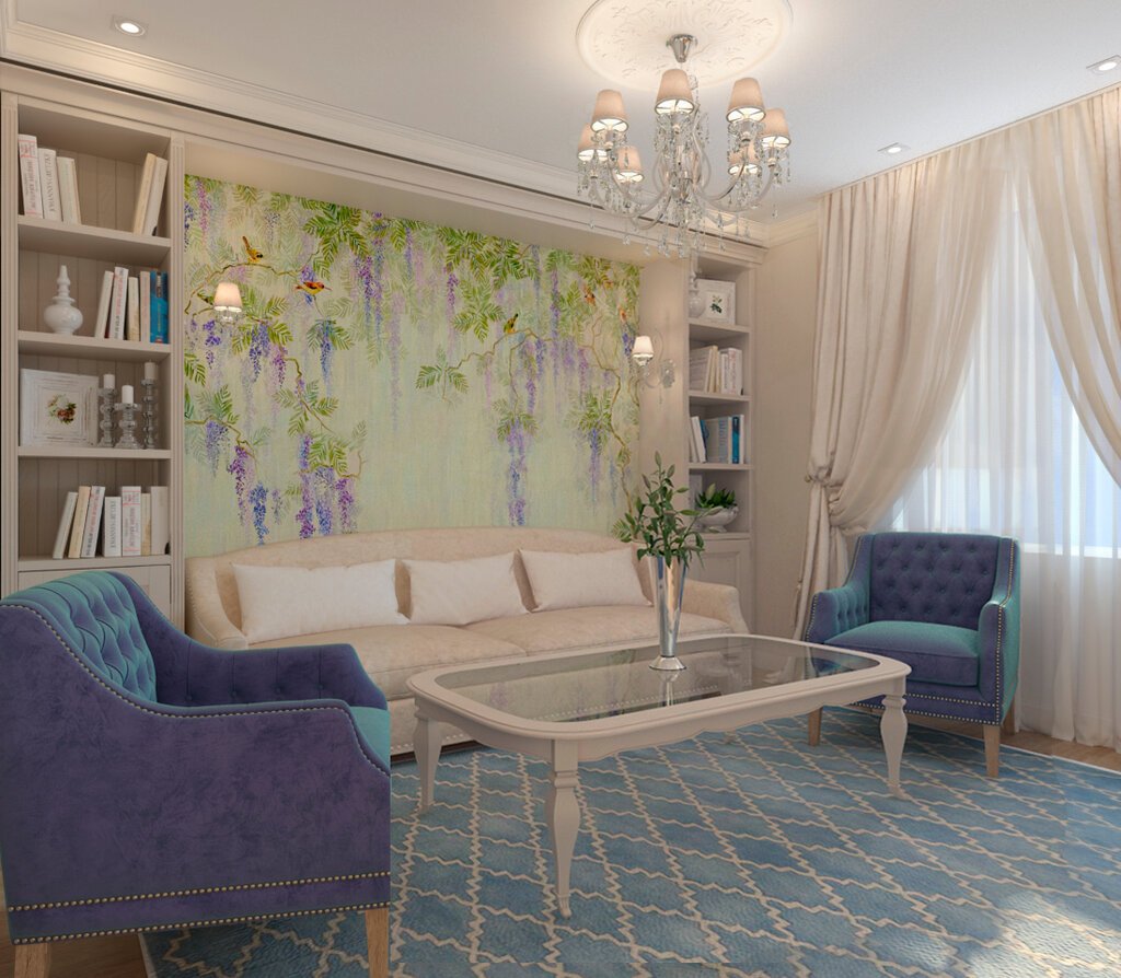 Гостиная в стиле Прованс в квартире 20 кв.м