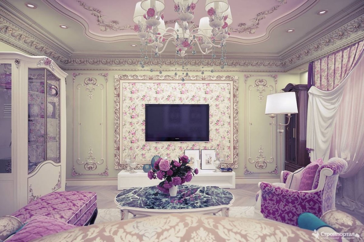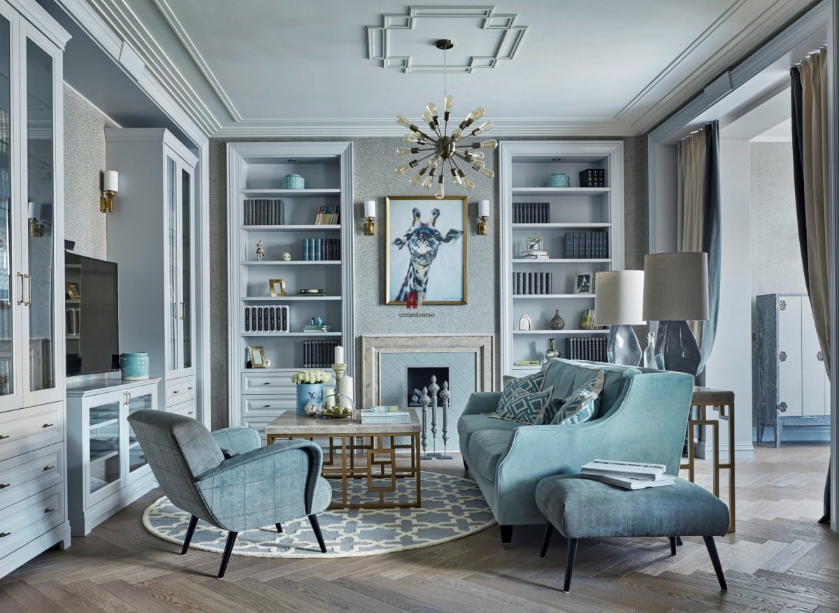 Линкруста в интерьере гостиной в стиле Неоклассика