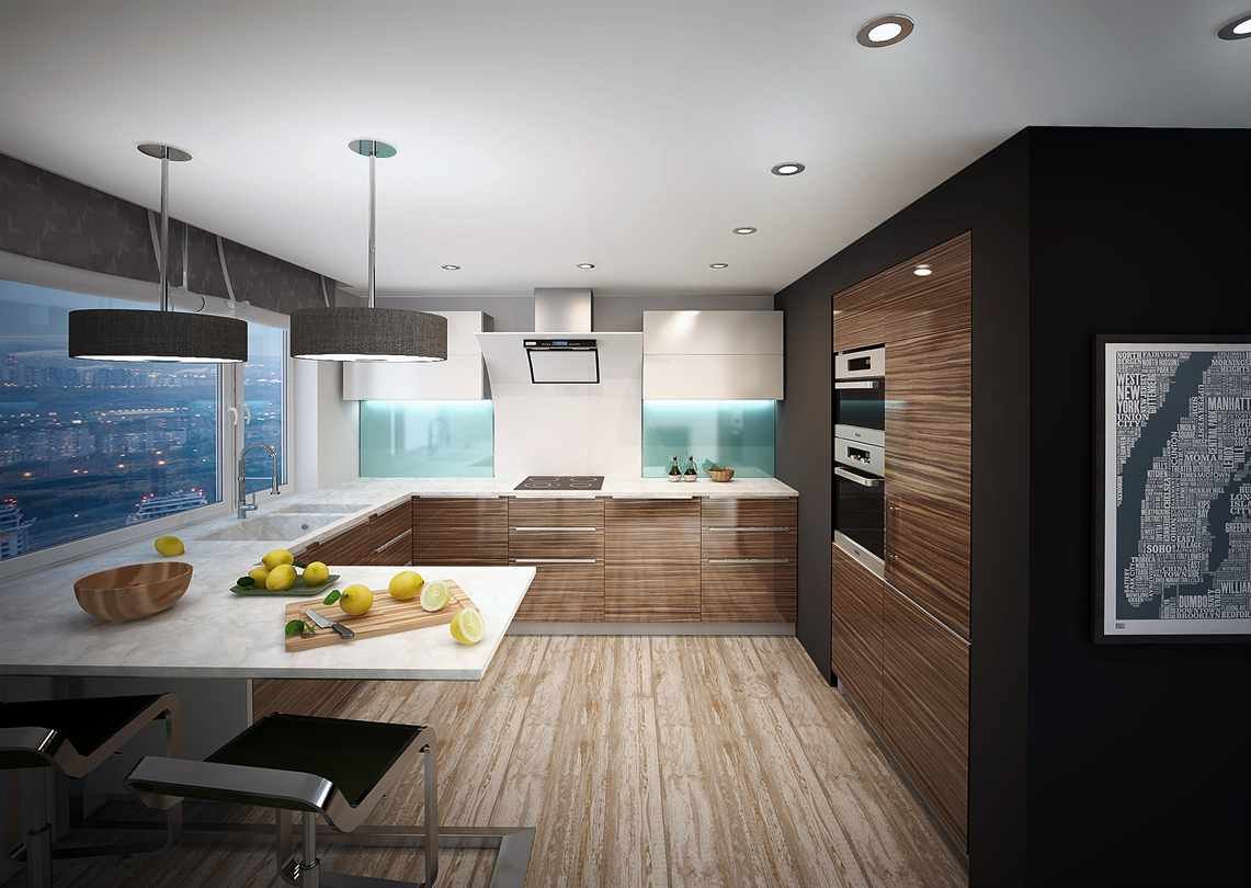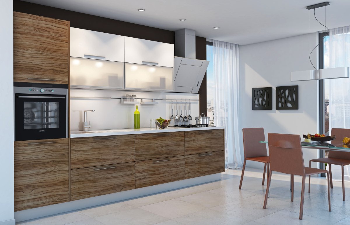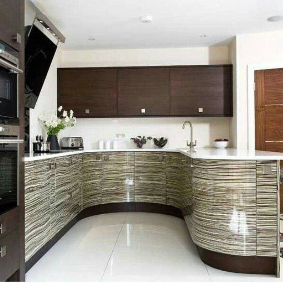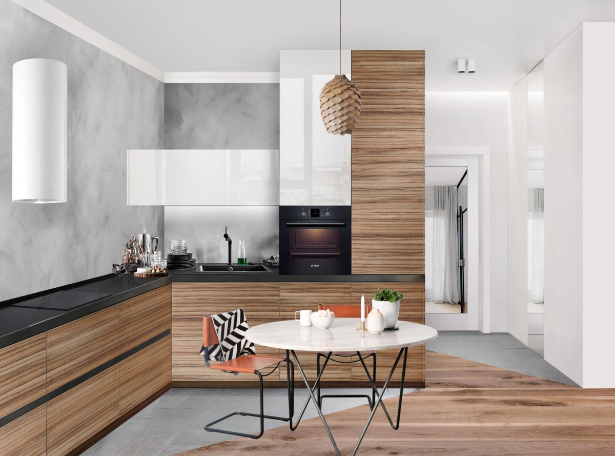 Кухни с фасадами под дерево в современном стиле