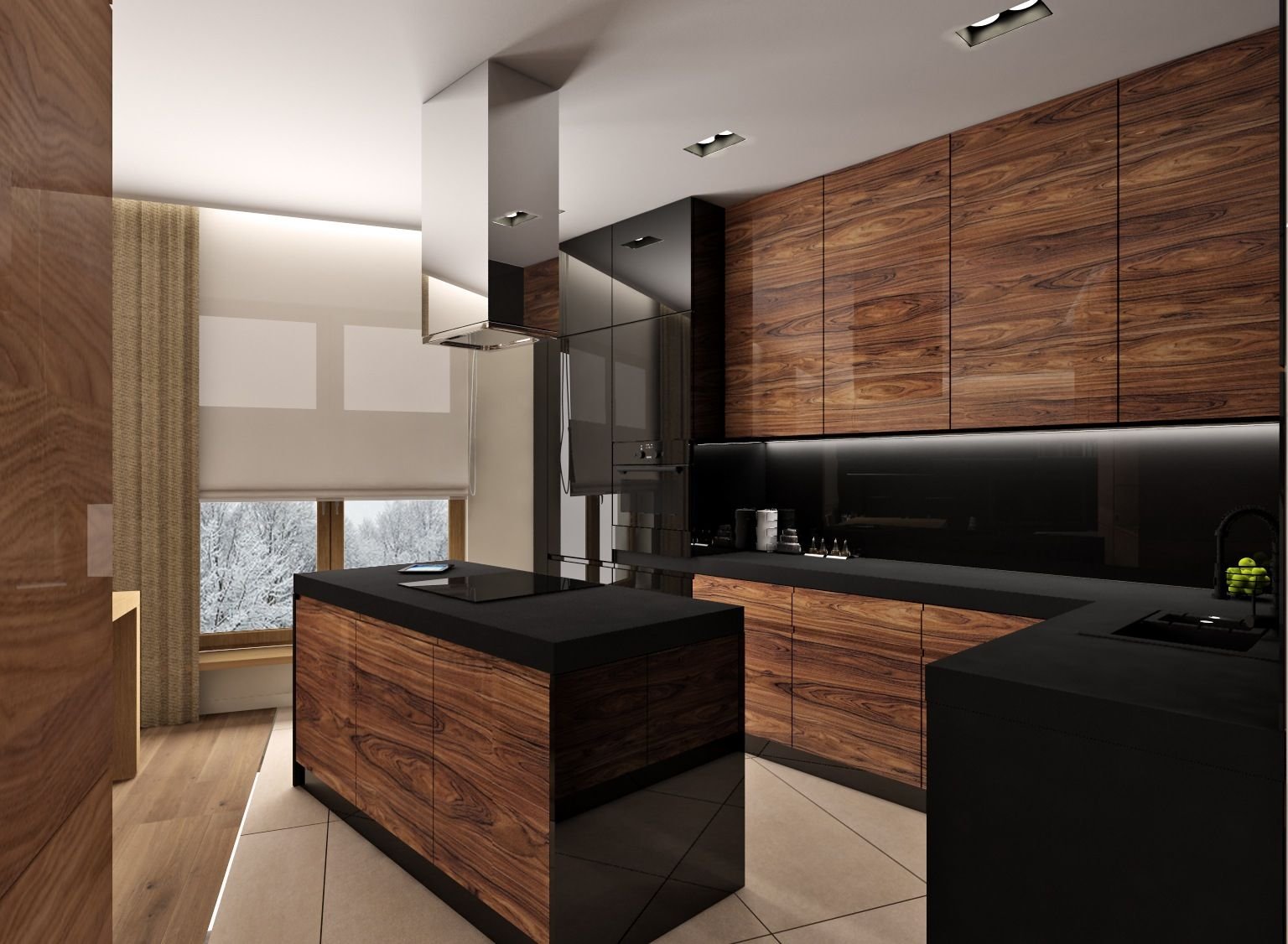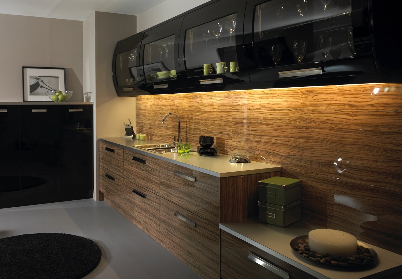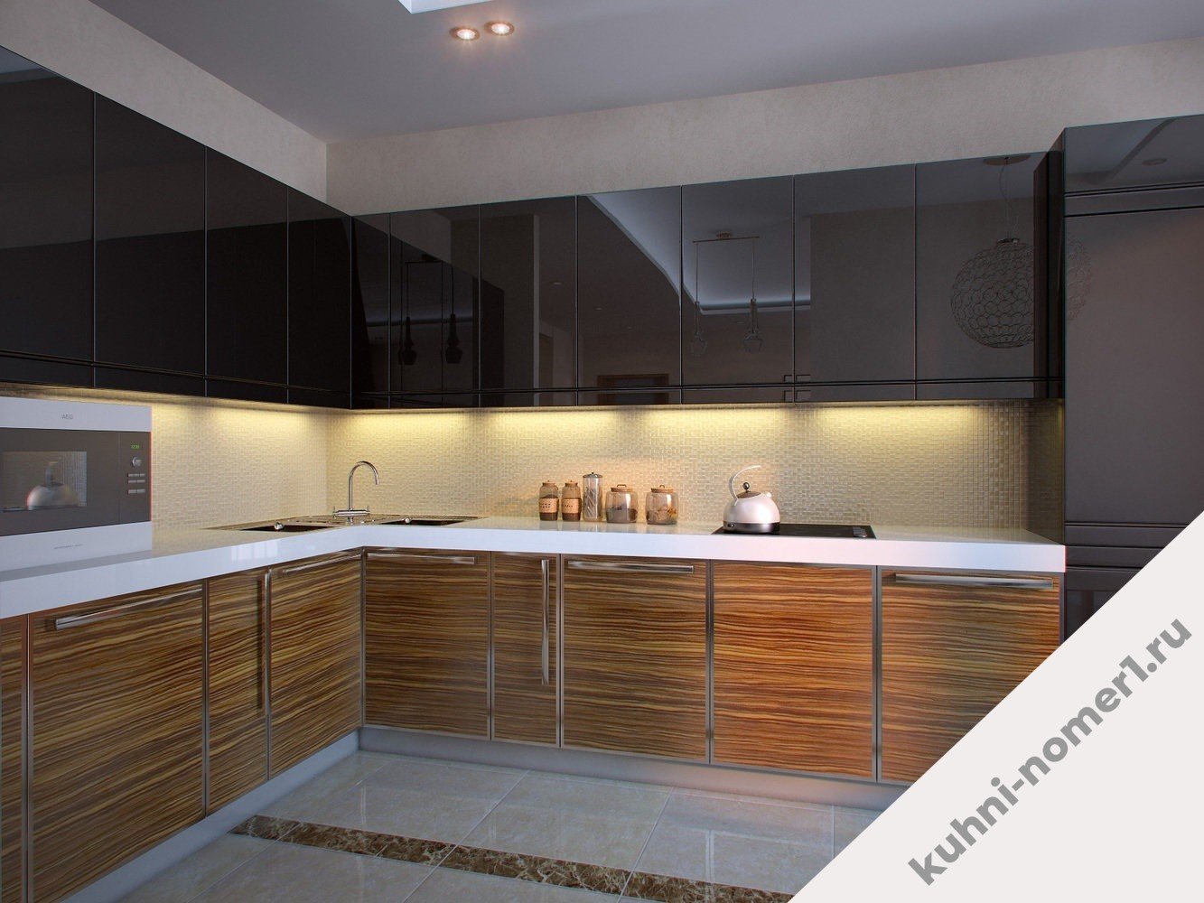 Кухня зебрано с черным