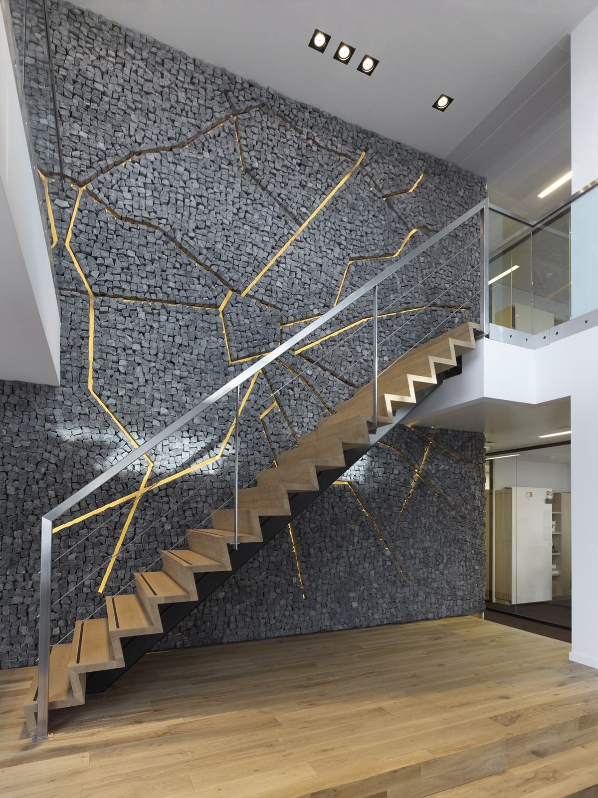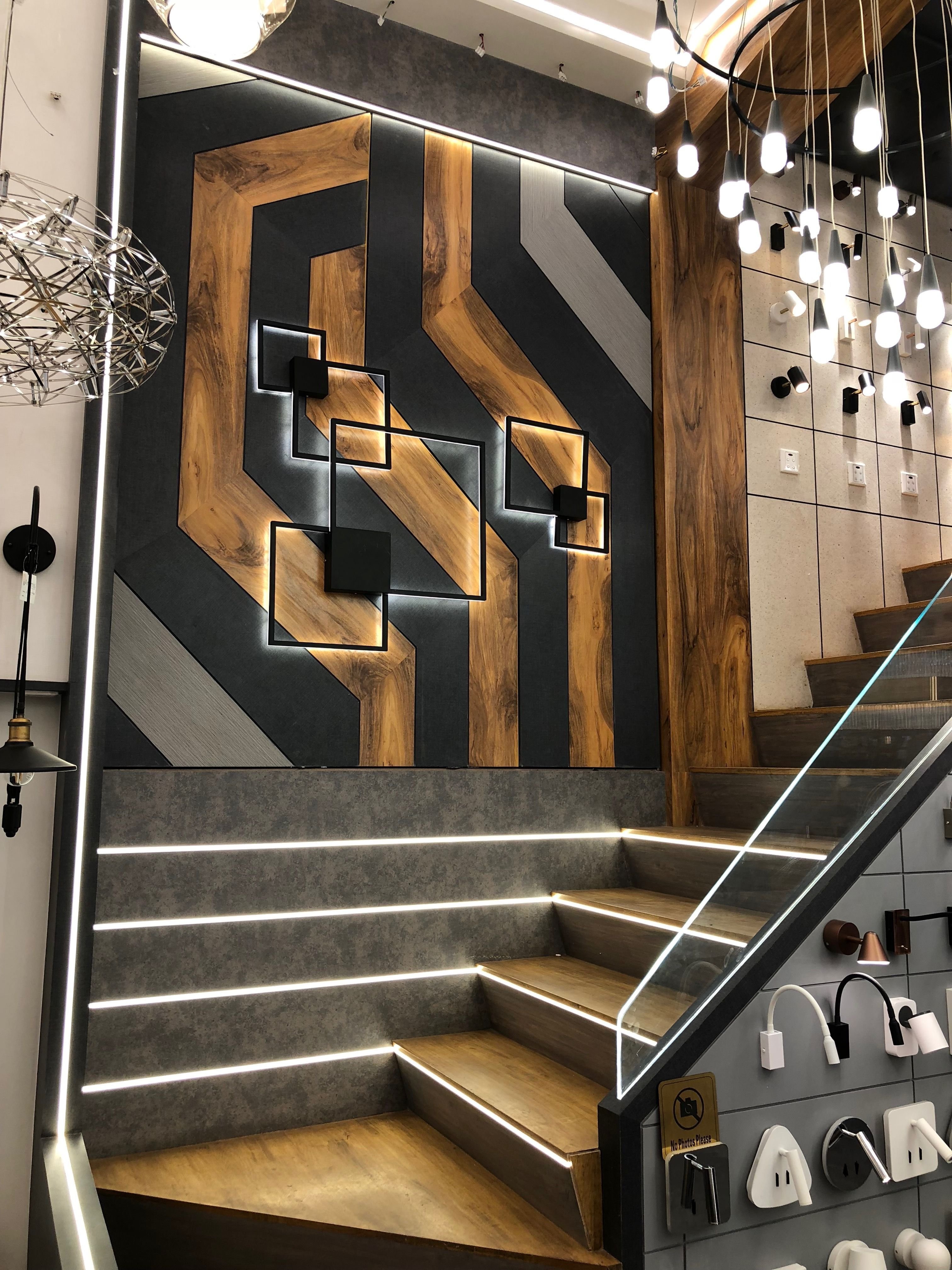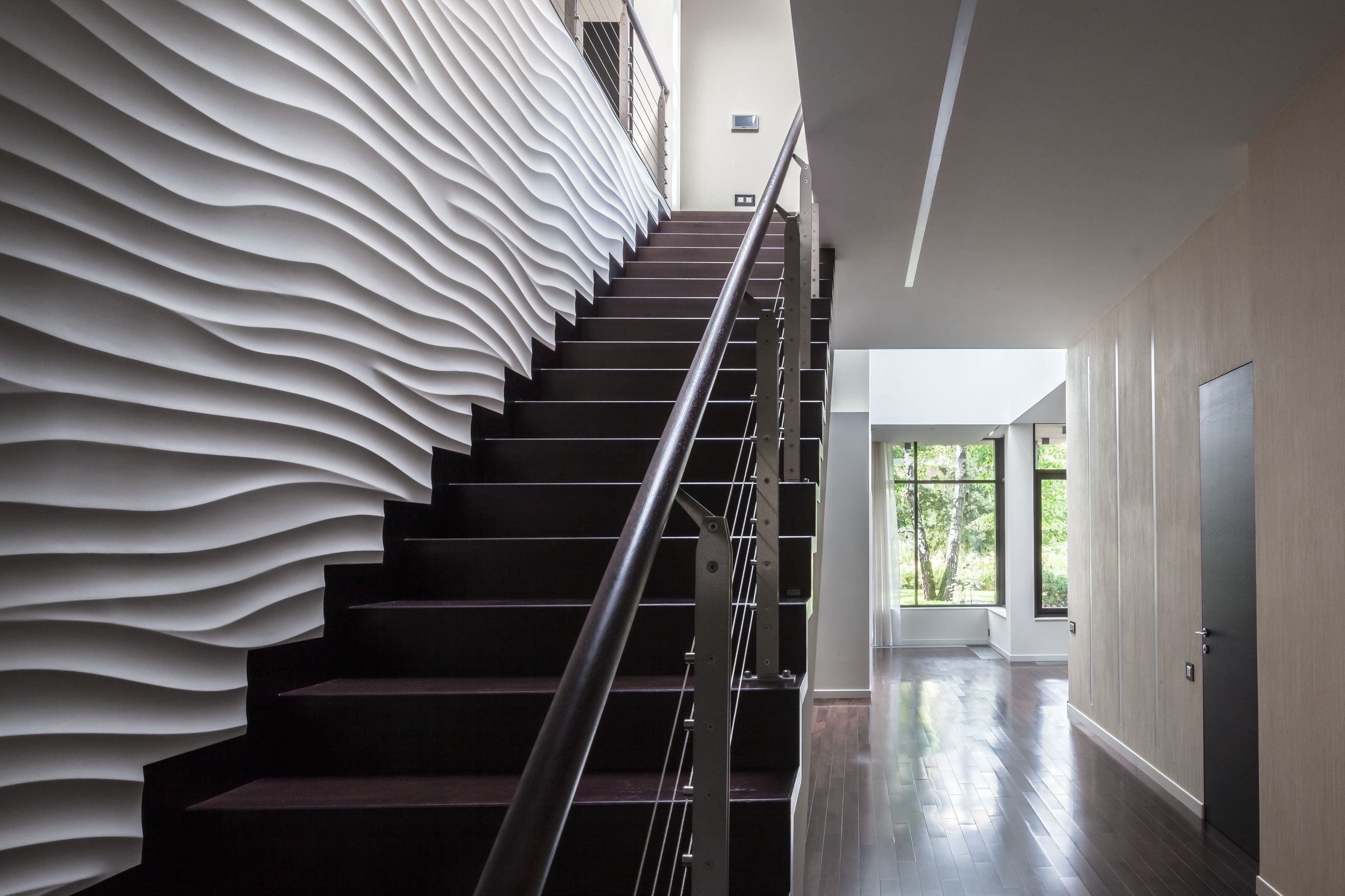 Современная отделка стен лестницы