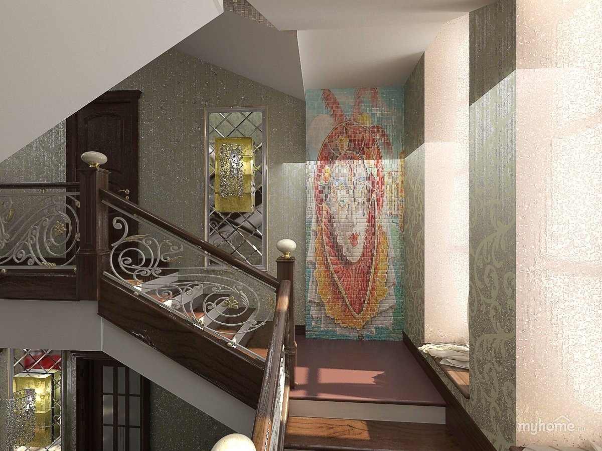 Интерьер холла с лестницей