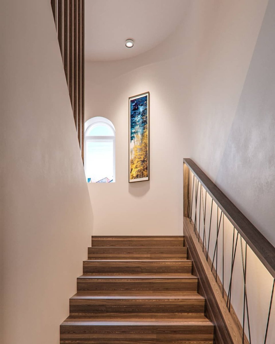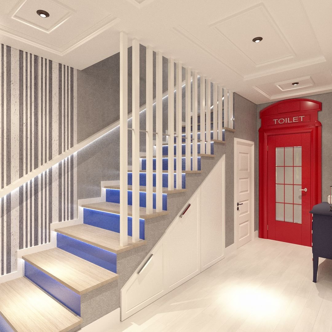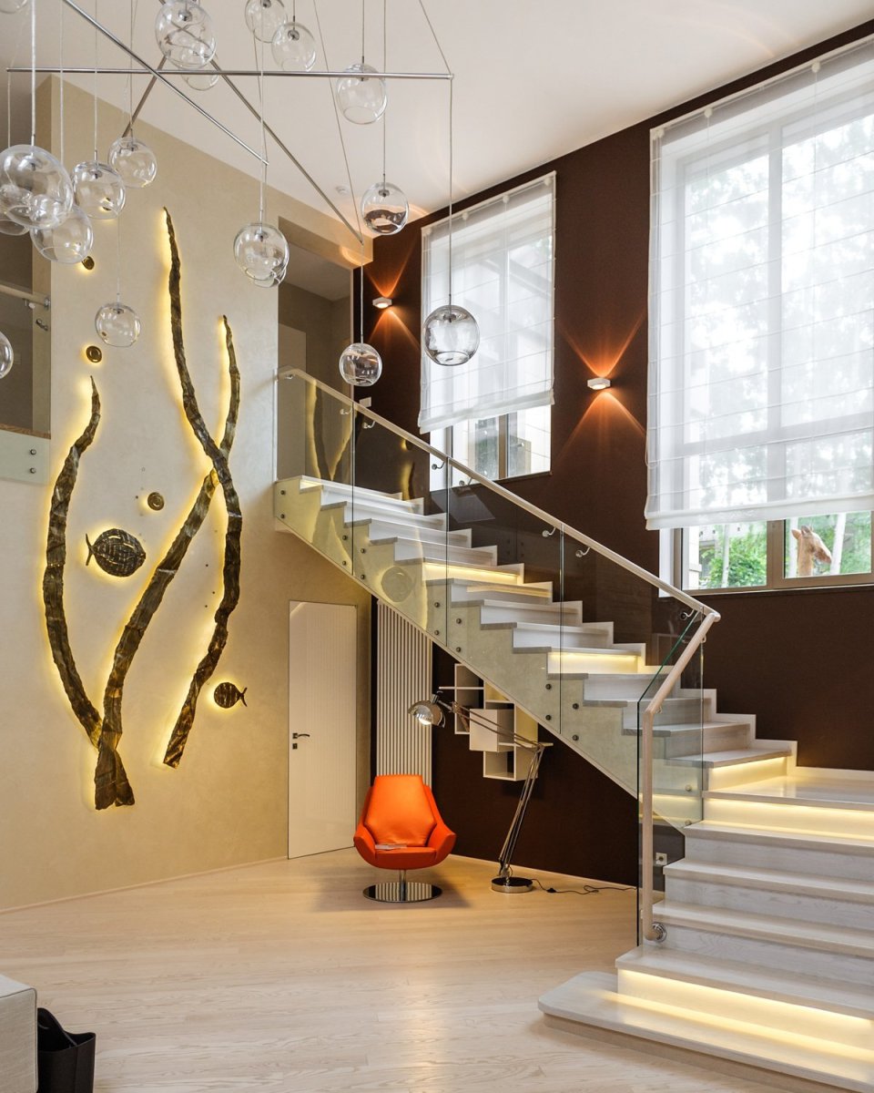 Интерьер лестницы в современном стиле декор